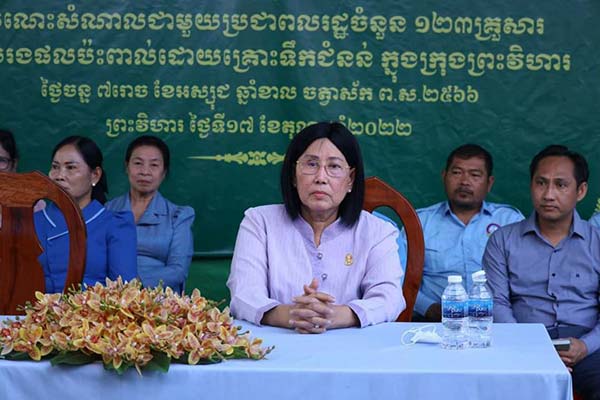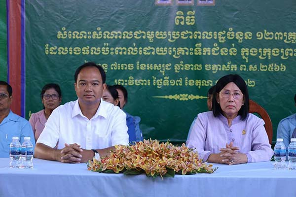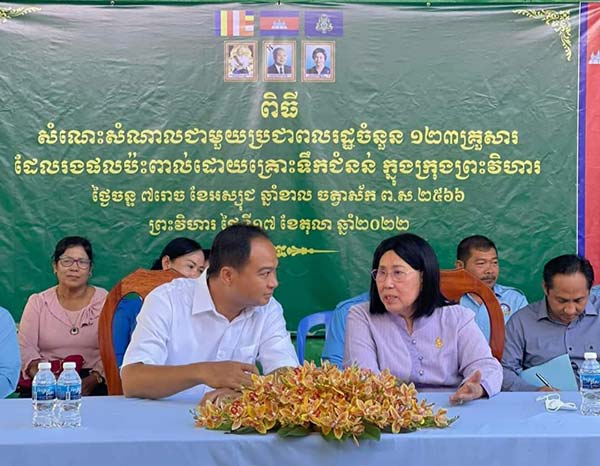 ព្រះវិហារ៖ ប្រជាពលរដ្ឋចំនួន១២៣គ្រួសារ មកពីសង្កាត់ចំនួន២ ក្នុងក្រុងព្រះវិហារ ដែលរងគ្រោះ ដោយទឹកជំនន់ទទួល អំណោយដ៏ថ្លៃថ្លាពី លោកជំទាវ ចឹក ហេង សមាជិកព្រឹទ្ធសភាមណ្ឌល ភូមិភាគ៨ ដោយក្នុងមួយគ្រួសារទទួលបាន អង្ករ២៥ គីឡូ ត្រីខ១យួរ ទឹកសុទ្ធ១ កេស មុង១ ភួយ១ និងកន្ទេល១។