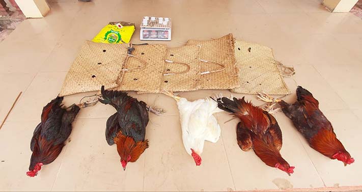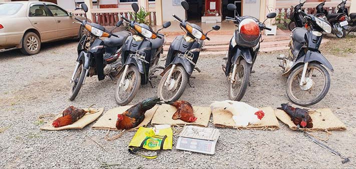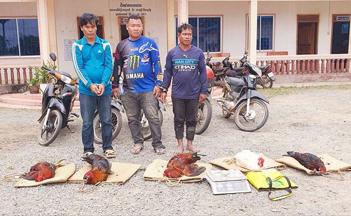 កំពង់ធំ÷ ដោយមានការចង្អុលបង្ហាញពីលោកឧត្តមសេនីយ៍ទោ មែ៉ន លី ស្នងការនគរបាលខេត្តកំពង់ធំជំរុញឲ្យលោកវីរៈសេនីយ៍ទោ កែ កញ្ចនា អធិការស្រុកកំពង់ស្វាយ បានចុះបង្ក្រាបល្បែងស៊ីសងខុសច្បាប់(ជល់មាន់)មួយកន្លែង កាលពីថ្ងៃម្សិលមិញ.កម្លាំងអធិការនគរបាលស្រុកកំពង់ស្វាយ បានចុះបង្ក្រាបនិងឃាត់ខ្លួនចំនួន៣នាក់ ស្ថិតនៅប៉ែកខាងជើងថ្នល់ជាតិប្រហែល១៥គីឡូម៉ែត្រ នៅចំណុចតំបន់ជាប់ដីចំការលោក ឃន សុកល អតីតប្រធានតុលាការខេត្តកំពង់ធំ(ដីទំនេរ) ស្ថិតក្នុងភូមិអូររំដេង ឃុំត្រពាំងឬស្សី ស្រុកកំពង់ស្វាយ ខេត្តកំពង់ធំ ។ តាមរបាយការណ៍របស់លោកវីរៈសេនីយ៍ទោ កែ កញ្ចនា អធិការស្រុកកំពង់ស្វាយ បានចុះបង្ក្រាបល្បែងស៊ីសងជល់មាន់.ជាលទ្ធផលគឺឃាត់ខ្លួនមុខសញ្ញាបាន០៣នាក់ ១-ឈ្មោះឌួង ឡែន ភេទប្រុស អាយុ៣៧ឆ្នាំ មុខរបរកសិករ រស់នៅភូមិត្បែង ឃុំត្បែង ស្រុកកំពង់ស្វាយ ខេត្តកំពង់ធំ។ ២-ឈ្មោះឡេ ស៊ាន ភេទប្រុស អាយុ៣១ឆ្នាំ មុខរបរកសិករ រស់នៅភូមិភ្នុំដែក ឃុំរម្យទុម ស្រុករវៀងខេត្តព្រះវិហារ ។ ៣-ឈ្មោះលី ម៉ូវហួត ភេទប្រុស អាយុ៣៤ឆ្នាំ មុខរបរបុគ្គលិកធានាគារស្ថាបនា នៅភូមិសាលាឃុំ ឃុំទ្រៀល ស្រុកតាំងគោក ខេត្តកំពង់ធំ លទ្ធផលដែលចុះបង្ក្រាបល្បែងស៊ីសងជល់មាន់ចាប់បាននូវវត្ថុតាងរួមមាន ១-មាន់ចំនួន០៥ក្បា ២-ជញ្ជីងថ្លឹងមាន់០១គ្រឿង ៣-កន្ត្រកដាក់មាន់០៥ ៤-ម៉ូតូចំនួន ០៥គ្រឿង ៥-ផ្លែដែក០២គូ ៦-ស្គុតរុំចំនួន០៧ដុំ ។ សូមបញ្ជាក់ថាសម្រាប់ជនសង្ស័យទាំងវត្ថុតាងត្រូវឃាត់ និងរក្សាទុកនៅអធិការស្រុកំពង់ស្វាយ ដើម្បីបំពេញតាមនីតិវិធីតាមផ្លូវច្បាប់។