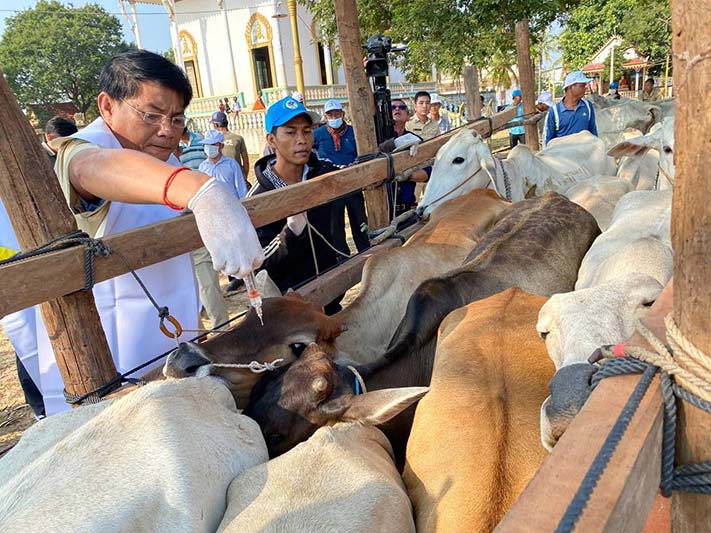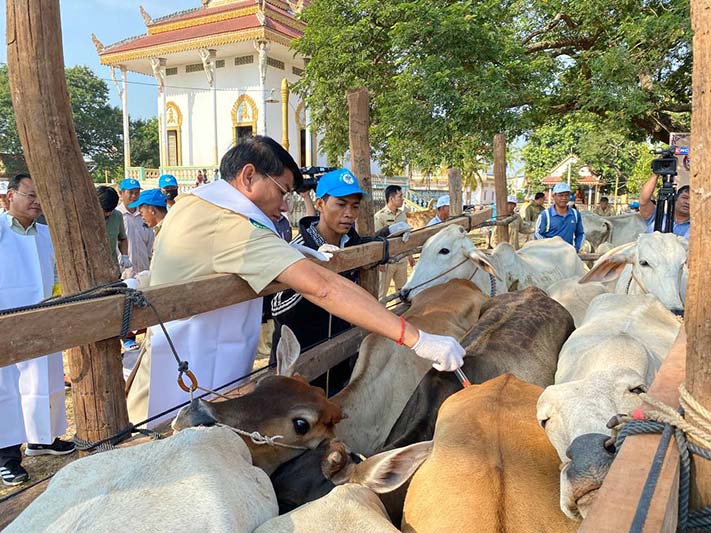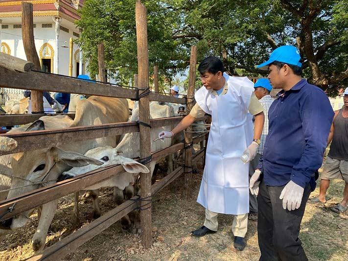 ៥-សូមលាងសម្អាតគោឲ្យបានរៀងរាល់ថ្ងៃ ជាមួយនឹងទឹកសាប៊ូ ឬ ទឹកស្អាត ដើម្បីជម្រះមេរោគផងនិងធ្វើឲ្យគោត្រជាក់ខ្លួនផង និងជួយជំរុញដល់ការធំធាត់លឿនផង.រាយការណ៍ជូនលោកមេភូមិ មេឃុំ ភ្នាក់ងារសុខភាពសត្វភូមិជាបន្ទាន់ក្នុងករណីពិនិត្យឃើញថា សត្វគោ ក្របី មានអាការៈជំងឺមិនប្រក្រតីកើតឡើង។លោក ប៉ែន វណ្ណរិទ្ធ ប្រធានមន្ទីរកសិកម្មរុក្ខាប្រមាញ់និងនេសាទខេត្តកំពង់ធំបានឲ្យដឹងថា នៅក្នុងខេត្តមានសត្វគោក្របីសរុបជាង ២១ម៉ឺនក្បាល ដោយឡែកនៅក្នុងថ្ងៃនេះយើងនឹងចាក់វ៉ាក់សាំងសត្វគោក្របីជូនប្រជាពលរដ្ឋនៅក្នុងភូមិសង្កាត់ខាងលើនេះ ចំនួន ៥០០ក្បាល ហើយមន្ត្រីជំនាញនៅតែបន្តចាក់ជូនម្ចាស់សត្វពាហនៈទាំងអស់នោះទាល់តែអស់ ។លោកបានបន្តថា.ក៏បានជំរុញឲ្យបងប្អូនប្រជាកសិករ ត្រូវមានការប្រុងប្រយត្ន័ខ្ពស់ ចំពោះសត្វចិញ្ចឹមរបស់ខ្លួន ខណៈតំបន់មួយចំនួនត្រូវរងគ្រោះដោយទឹកជំនន់ ហើយប្រសិនបើមានបញ្ហាជំងឺអ្វីមួយកើតលើសត្វគោ ក្របី ត្រូវរាយការណ៍ទៅមន្ត្រីជំនាញដើម្បីពិនិត្យ និងព្យាបាលបានទាន់ពេលវេលា។ឯកឧត្តម បានបន្តថាការចាក់ថ្នាំការពារជំងឺទៅលើសត្វគោ ក្របី ត្រូវធ្វើឡើងតាមរយៈមន្រ្តីចុះទៅដល់មូលដ្ឋានផ្ទាល់របស់ប្រជាពលរដ្ឋ ឬតាមរយៈភ្នាក់ងារ ពេទ្យសត្វតាមភូមិ ហើយរាល់ការចាក់វ៉ាក់សំាងនេះ ពុំតម្រូវឲ្យបង់ប្រាក់ទេ។