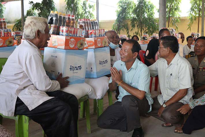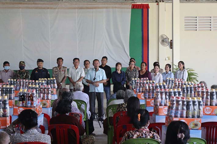 ថ្លែងនៅក្នុងឱកាសដ៏វិសេសវិសាលនេះ លោក អភិបាលស្រុក បានពាំនាំផ្តាំសួរសុខទុក្ខ របស់សម្តេចតេជោ ហ៊ុន សែន និងសម្តេចកិត្តិព្រឹទ្ធបណ្ឌិត ប៊ុន រ៉ានី ហ៊ុន សែន និងឯកឧត្តម ងួន រតនៈ អភិបាលនៃគណៈអភិបាលខេត្តកំពង់ធំ ដែលលោកតែងតែនឹករលឹកនិងរួមសុខរួមទុក្ខជាមួយបងប្អូនជានិច្ច ដោយមិនទុកបងប្អូនពលរដ្ឋណា.អត់ស្បៀងនោះឡើយ។ លើសពីនេះ លោកក៏បានណែនាំដល់អាជ្ញាធរឃុំម្សាក្រង ត្រូវផ្សព្វផ្សាយជូនដំណឹងឲ្យបានទូលំទូលាយ ស្តីពីការគ្រប់គ្រងប្រើប្រាស់ផ្លូវ ស្ទឹង ព្រែក និងចំណីផ្លូវនានាក្នុងឃុំឲ្យប្រជាពលរដ្ឋបានជ្រាប និងឲ្យប្រជាពលរដ្ឋក្នុងឃុំត្រូវសុំការអនុញ្ញាតជាមុនមកអាជ្ញាធរពាក់ព័ន្ធ មុននឹងសាងសង់សំណង់រឹងផ្សេងៗ ឬចាក់ដីនៅតាមភូមិឋានរបស់ខ្លួនដើម្បីឲ្យមានសណ្តាប់ធ្នាប់ របៀបរៀបរយសាធារណៈ បរិស្ថានស្អាត និងស្ថិតនៅក្រោមគោលការណ៍ច្បាប់នានា ហើយមិនត្រូវនាំគ្នារំលោភយកដីរដ្ឋ ដីចំណីផ្លូវ ស្ទឹង ព្រែក ប្រឡាយ ប្រព័ន្ធលូរនានា ដែលជាដើមហេតុនាំឲ្យកកស្ទះទឹក ជនលិច។ជាមួយនេះផងដែរ លោកសាយ គឹមឡម បានបញ្ជាក់ថា ការចូលរួមជួយគ្នាក្នុងគ្រាក្រលំបាកនេះ គឺកិច្ចការងារចាំបាច់បំផុត ដែលអាជ្ញាធរគ្រប់លំដាប់ថ្នាក់ពិសេស ភូមិ ឃុំ ត្រូវយកចិត្តទុកដាក់ដោយមិនទុកឲ្យប្រជាពលរដ្ឋណាម្នាក់ អត់ស្បៀងអាហារ ឬមិនមានការជួយជ្រោមជ្រែង ពីអាជ្ញាធរនោះឡើយក្នុងស្ថានភាពគ្រោះមហន្តរាយឬឧប្បទ្ទវេហតុណាមួយ ជាពិសេសគ្រួសារងាយរងហានិភ័យ ស្ត្រីមេម៉ាយ និងកុមាកំព្រាដែល ភូមិ ឃុំស្ថិតនៅផ្ទាល់នោះឡើយ។គួរបញ្ជាក់ថា ប្រជាពរដ្ឋចំនួន៦៥៤គ្រួសារ ក្នុង១គ្រួសារទទួលបាន អង្ករ០១បេ មី០១កេស ទឹកត្រី០១យួរ ទឹកស៊ីអ៉ីវ០១យួរ ត្រីខ០១យួរ ទឹកបរិសុទ្ធ០១កេះ។