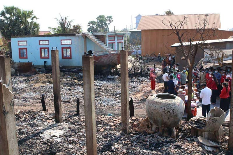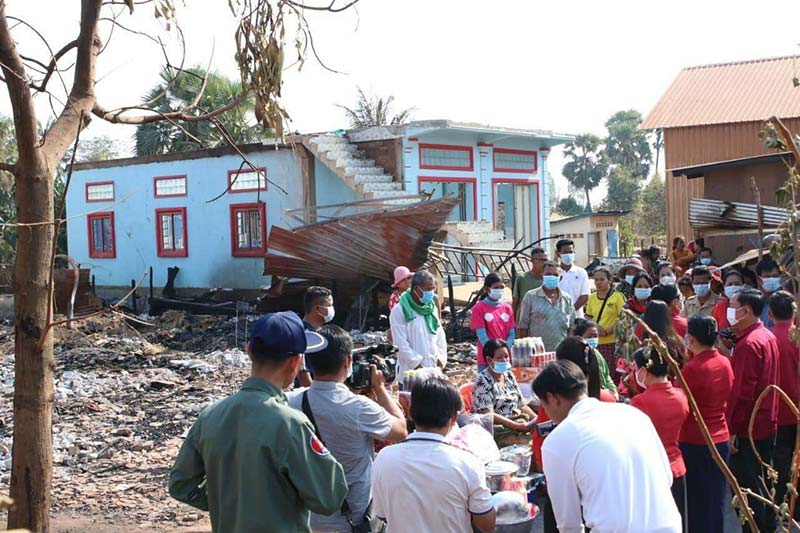 កំពង់ធំ៖ ឯកឧត្តម-សុខ លូ អភិបាលខេត្តកំពង់ធំ និងជាប្រធានគណៈកម្មាធិការសាខាកាកបាទក្រហមខេត្ត និងលោកស្រីព្រមទាំងប្រតិភូអមដំណើរ អញ្ជើញចុះសាកសួរសុខទុក្ខជាពលរដ្ឋដែលទទួលរងគ្រោះដោយសារអគ្គីភ័យឆាបឆេះផ្ទះចំនួន ៣ខ្នង កាលពីព្រឹកថ្ងៃសៅរ៍ ទី២០ ខែកុម្ភៈ វេលាម៉ោង ៧ព្រឹក បណ្តាលមកពីផ្ទុះសេខ្សែភ្លើង ស្ថិតនៅភូមិក្រសាំងជ្រុំជើង ឃុំសំព្រោច ស្រុកស្ទោង ខេត្តកំពង់ធំ។
