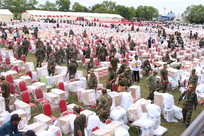 ឯកឧត្តម ងួន រតនៈ អភិបាលខេត្តកំពង់ធំ បានសំណេះសំណាលដល់មន្ត្រីរាជការ និងកងកម្លាំងប្រដាប់អាវុធទាំង៣ ដែលធ្វើសកម្មភាពយ៉ាងសកម្មក្នុងការច្រកស្រូវពូជ និងស្បៀងអាហារ.ការពារទឹកភ្លៀងដើម្បីឲ្យមានសុវត្ថិភាពត្រៀមទុកជូនបងប្អូនប្រជាពលរដ្ឋ។