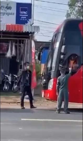 ប្រភពបន្តថា ពេលដែលលោកឧកញ៉ាមកដល់បានហៅ អ្នកបើកបររថយន្តក្រុងឲ្យចុះពីលើរថយន្តដើម្បីដោះស្រាយក៏ប៉ុន្តែអ្នកបើកបររថយន្តក្រុងមិនព្រមចុះពីលើរថយន្តទើបធ្វើឲ្យលោកឧកញ៉ាខឹង ហើយអង្គរក្ស លោកឧកញ៉ា បានយកដុំថ្ម វាយបំបែកកញ្ចក់រថយន្តដើម្បីឲ្យអ្នកបើកបរចុះមកដោះស្រាយ។ខណៈនោះ ប្រ៊ូរថយន្តក្រុងបានយកទូរសព្ទ័ដៃ ថតរូបលោកឧកញ៉ានិងអង្គរក្ស លោកឧកញ៉ាបានឲ្យអ្នកថតនោះលុបរូបភាពចេញ ក៏បន្តែជននោះមិនព្រមលុបទើបលោកឧកញ៉ាយកទូរសព័្ទវាយកំទេចចោលតែម្តង។ក្រោយមកសមត្ថកិច្ចបានអញ្ជើញលោកឧកញ៉ានិងអង្គរក្សនិងអ្នកបើកបររថយន្តក្រុងទៅអធិការដ្ឋានក្រុងបាវិតដើម្បីដោះស្រាយ ក៏ប៉ុន្តែភាគីអ្នកបើករថយន្តក្រុងមិនព្រមចូលខ្លួនដោះស្រាយទេ គឺរត់គេចខ្លួន ហើយបានឲ្យម្ចាស់ក្រុមហ៊ុនរថយន្តក្រុងចូលមកដោះស្រាយវិញ។