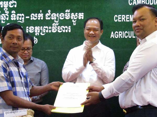 ពិធីចុះកិច្ចសន្យាទិញ-លក់នេះ ក៏មានចូលរួមជាអធិបតីក្នុងពិធីកិច្ចសន្យាខាងលើមាន ឯកឧត្តម គីម រិទ្ឋី អភិបាលនៃគណៈអភិបាលខេត្តព្រះវិហារ, លោកបណ្ឌិត សរ ចិត្រា អគ្គលេខាធិការរងក្រសួងកសិកម្ម រុក្ខាប្រមាញ់ និងនេសាទ និងជានាយកគម្រោង ពិពិធកម្មកសិកម្មកម្ពុជា (CASDP), លោក គីម លាស់ នាយកក្រុមហ៊ុន Hang Harvest Agriculture, ក្រុមហ៊ុន SBK, មន្រីមន្ទីកសិកម្ម និងក្រុមប្រឹក្សាភិបាលសហគមន៏កសិកម្មជាច្រើនរូបផងដែរ៕