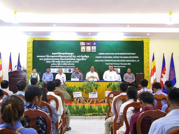 ព្រះវិហារ៖ រសៀលថ្ងៃទី០១ ខែវិចិ្ឆកា ឆ្នាំ២០២២ នៅសាលប្រជុំមន្ទីកសិកម្ម រុក្ខាប្រមាញ់និងនេសាទខេត្តព្រះវិហារ មានរៀបចំពិធីចុះកិច្ចសន្យាទិញ-លក់ផលិតផលដំឡូងមីក្រៀម(ស្ងួត) រវៀងសហគមន៏កសិកម្មចំនួន១១ ជាមួយក្រុមហ៊ុន ហង្សហាវេស (Hang Harvest Agriculture) លើបរិមាណប្រមាណ ៥០០០០តោន ដោយមានប្រជាកសិករសហគមន៏ចំនួន ២៧០៤គ្រួសារជាអ្នកផលិត។