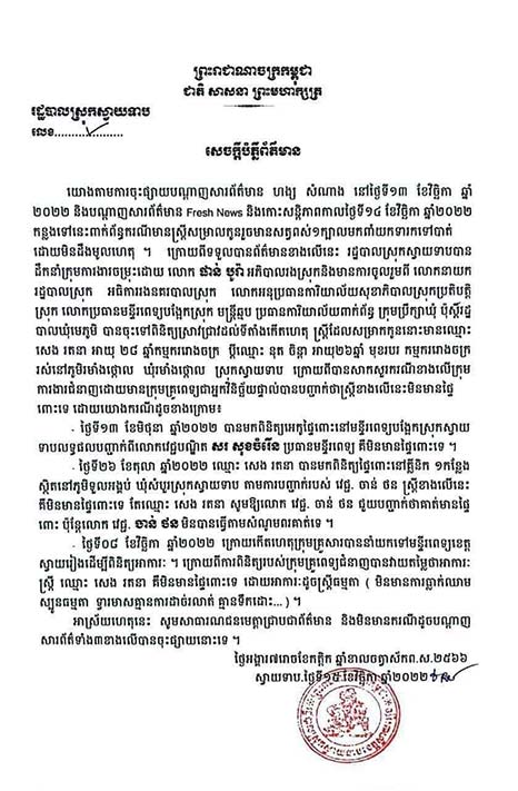 គួរជម្រាបថា ស្ដ្រីម្នាក់ឈ្មោះ សេង រតនា ហៅស្រីហ៊ុច អាយុ២៦ឆ្នាំ មុខរបរជាកម្មការិនីនៅតាមរោងចក្រ បានប្រឌិតរឿងថា ខ្លួនទើបទើបសម្រាលកូន តែជាអកុសល ត្រូវសត្វចម្លែកដ៏ធំមកពាំយកទៅបាត់ ធ្វើឲ្យនាងភ័យតក់ស្លុតដួលសន្លប់នៅកន្លែងកើតហេតុ។ ក្រោយមករឿងរ៉ាវនេះបានបង្កឲ្យមានការភ្ញាក់ផ្អើលតាមបណ្ដាញសង្គម រហូតដល់សមត្ថកិច្ចចុះស្រាវជ្រាវ ទើបដឹងថា ជារឿងប្រឌិតតែប៉ុណ្ណោះ៕