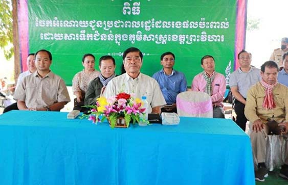 ព្រះវិហារ៖ ឯកឧត្ដម មាស សុភា ទេសរដ្ឋមន្ត្រីទទួលបន្ទុកបេសកកម្មពិសេស និងជាប្រធានក្រុមការងាររាជរដ្ឋាភិបាលចុះមូលដ្ឋានខេត្តព្រះវិហារ បាននាំអំណោយរបស់សម្តេចតេជោ ហ៊ុន សែន និងសម្តេចកិត្តិព្រឹទ្ធបណ្ឌិត ប៊ុន រ៉ានី ហ៊ុនសែន ចែកជូនប្រជាពលរដ្ឋរងគ្រោះដោយទឹកជំនន់ចំនួន៦៦៧គ្រួសារ ក្នុងស្រុកគូលែន ខេត្តព្រះវិហារ។