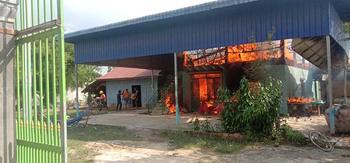 កណ្តាល ៖ មានករណីគ្រោះអគ្គីភ័យ ឆេះផ្ទះពលរដ្ឋមួយខ្នងទាំងស្រុង នាវេលាម៉ោង២និង១៥នាទីរសៀល ថ្ងៃទី១៦វិច្ឆិកាឆ្នាំ២០២២ នៅចំណុចភូមិស្លែង ឃុំត្រពាំងវែង ស្រុកកណ្តាលស្ទឹង ខេត្តកណ្តាល ដោយមូលហេតុឆ្លងចរន្តអគ្គិសនីទុស្សេខ្សែភ្លើងទើបបណ្ដាលឱ្យឆេះផ្ទះអស់ទាំងស្រុង ។