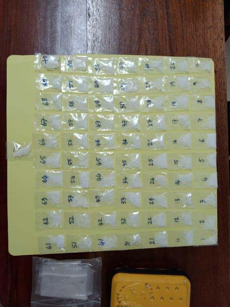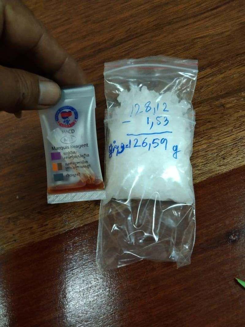-ម្សៅក្រាមពណ៌ សថ្លា ប្រភេទមេតំហ្វេតាមីន (ICE) ចំនួន៧១កញ្ចប់តូច ស្មើនឹងទម្ងន់១២៦.៥៩ក្រាម ។