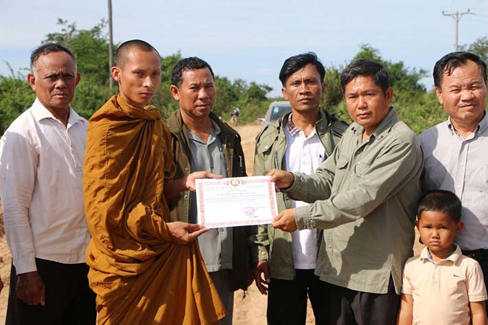 កំពង់ធំ៖ ឯកឧត្តមបណ្ឌិត ប៉ែន សូត្រ ទីប្រឹក្សាអគ្គលេខាធិការដ្ឋានព្រឹទ្ធសភា ឯកឧត្តម ឃួន សុវណ្ណ ឧត្តមប្រឹក្សាសម្ដេចព្រះមហាសង្ឃរាជ្យ ទេព វង្ស និងព្រះភិក្ខុដ្ឋានវេជ្ជធម្មោ ឃិន រ៉ាវីត ព្រះប្រធានសមាគមប្រជាជនសន្តិភាពនៃកម្ពុជា ព្រមទាំងរដ្ឋបាលឃុំឈូក បានចុះពិនិត្យផ្លូវលំដែលបានកំពុងជួសជុលប្រវែងជាង៤០០ម៉ែត្រ ចំណាយថវិកាអស់៦.៣០០.០០០រៀលស្ថិតនៅភូមិទឹកអណ្ដូង ឃុំឈូក ស្រុកប្រាសាទសំបូរ ខេត្តកំពង់ធំ រសៀលថ្ងៃម្សិលមិញនេះ។