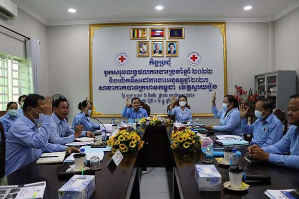 ខេត្តស្វាយរៀង៖នៅថ្ងៃសុក្រ ទី ៩ ខែ វិច្ឆិកា ឆ្នាំ ២០២២ នៅទីស្នាក់ការសាខាកាកបាទក្រហមកម្ពុជាខេត្តស្វាយរៀង ឯកឧត្តម ម៉ែន វិបុល ប្រធានគណៈកម្មាធិការសាខា បានអញ្ជេីញដឹកនាំកិច្ចប្រជុំបូកសរុបលទ្ធផលការងារប្រចាំឆ្នាំ ២០២២ និងលើកទិសដៅការងារអនុវត្តបន្ត ឆ្នាំ ២០២៣ និងមានការអញ្ជើញចូលរួមពីលោកជំទាវ ហៅ ច័ន្ទសិរីទេពី ចៅ ភិរុណ អនុប្រធានអចិន្ត្រៃយ៍គណៈកម្មាធិការសាខា ព្រមទាំង ឯកឧត្តម លោកជំទាវ គណៈកម្មាធិការសាខា លោក លោកស្រីប្រធាន អនុប្រធានគណៈកម្មាធិការអនុសាខា ក្រុង ស្រុកទាំង ៨ ក្រុមប្រតិបត្តិសាខាសរុបចំនួន ២១ នាក់ ។ គោលបំណងនៃកិច្ចប្រជុំនេះ គឺដើម្បីបូកសរុបលទ្ធផលការងារដែលសម្រចបានក្នុងឆ្នាំ ២០២២ ក៍ដូចជាបញ្ហាប្រឈមនានាដែលសាខា អនុសាខាជួបប្រទះ និងធ្វើការដោះស្រាយនូវសំណូមពរមួយចំនួនដែលមាននៅថ្នាក់សាខា និងអនុសាខា ។ របៀបវារៈនៃកិច្ចប្រជុំនេះរួមមាន៖