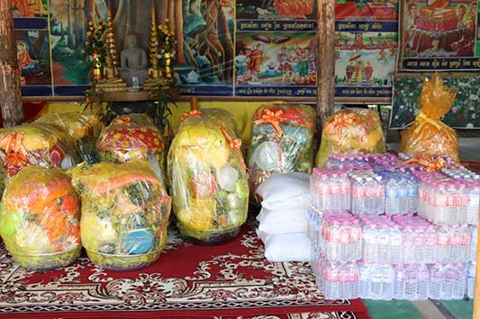 ទេយ្យទានដែលសាខាបានទទួលរួមមាន៖ អង្ករ ៧៥គីឡូក្រាម ទឹកសុទ្ធ ៥១យួរ បន្លុង១១ ថវិកាចំនួន ២០០,០០០រៀល ។