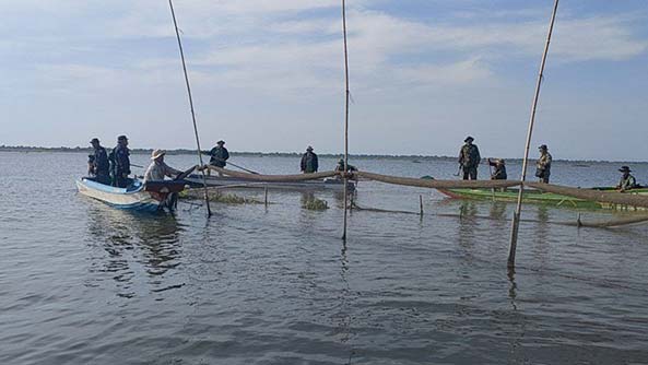 (កំពង់ធំ)នៅថ្ងៃម្សិលមិញនេះ ឧត្តមសេនីយ៍ត្រី វ៉ា ចាន់កុសល ស្នងការរង និងជាប្រធានក្រុមការងារទទួលខុសត្រូវឃុំផាត់សណ្តាយ ស្រុកកំពង់ស្វាយ ព្រមទាំងសហការរី បានចេញប្រតិបត្តិការត្រួតពិនិត្យ និងបង្រ្កាបបទល្មើសនេសាទបឹងទន្លេសាប បានប្រើប្រាស់ឧបករណ៍នេសាទជាលក្ខណៈទ្រង់ទ្រាយធំ និងហួសដែនកំណត់។ ក្រុមការងារប្រចាំការអនុវត្តបទបញ្ជាទប់ស្កាត់ និងបង្ក្រាបបទល្មើសនេសាទបឹងទន្លេសាប ឈរជើងនៅចំណុចផាត់សណ្តាយ ដឹកនាំដោយលោក ឧត្តមសេនីយ៍ត្រី វ៉ា ចាន់កុសល ស្នងការរង និងជាប្រធានក្រុមការងារទទួលខុសត្រូវឃុំផាត់សណ្តាយ ដឹកនាំកម្លាំង ចេញប្រតិបត្តិការត្រួតពិនិត្យ និងបង្រ្កាបបទល្មើសនេសាទ នៅចំណុច ចាប់ពីកន្លុកបាយក្អែករហូតប៉ាលហាលភូមិសាស្ត្រឃុំផាត់សណ្តាយ ស្រុកកំពង់ស្វាយ ខេត្តកំពង់ធំ ។ ការអនុវត្តបទបញ្ជាទប់ស្កាត់ និងបង្ក្រាបបទល្មើសនេសាទបឹងទន្លេសាបទទួលបានលទ្ធផល បង្ករសំណុំរឿងបានចំនួន០១ករណី បានចុះរុះរើបំផ្លាញចោលវត្ថុតាងនៅនិងកន្លែងរួមមាន របាំងសាច់អួនចំនួន០៥របាំង ប្រវែង២៥០០ម៉ែត្រ ឡុកចំនួន១០គ្រឿង លប/លូចំនួន ២០មាត់ បង្គោលចំនួន៧៥០ដើម ចាក់លែងត្រីស្រស់ចំរុះ ចំនួនជាង២០គីឡូក្រចូលទន្លេវិញ ។ គួរបញ្ជាក់ផងដែរថា ឧត្តមសេនីយ៍ត្រី វ៉ា ចាន់កុសល ស្នងការរង និងជាប្រធានក្រុមការងារទទួលខុសត្រូវឃុំផាត់សណ្តាយ បានធ្វើការអប់រំដល់ប្រជានេសាទបានចំនួន០៧នាក់ ដែលខុសលក្ខណៈច្បាប់ស្តីពីជលផល និង បទបញ្ជាររបស់ប្រមុខរាជរដ្ឋាភិបាល។ ចំពោះការប្រើមធ្យោបាយការណូតចំនួន០៤គ្រឿង។