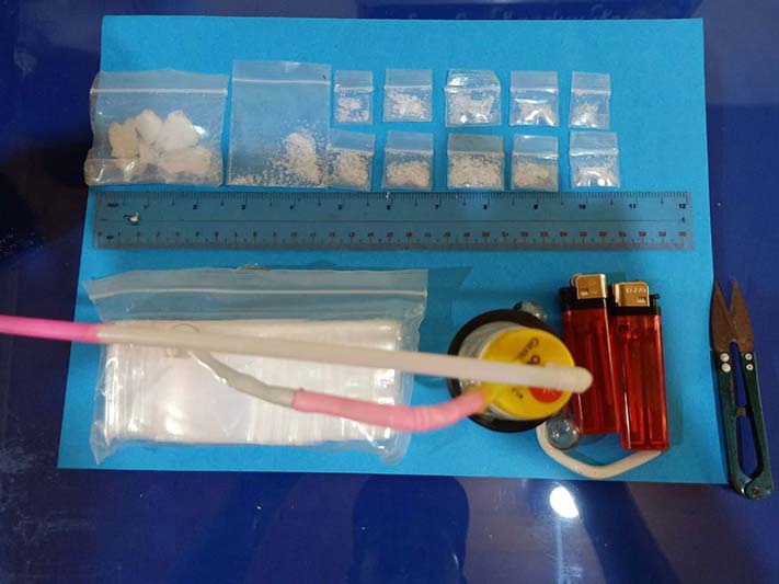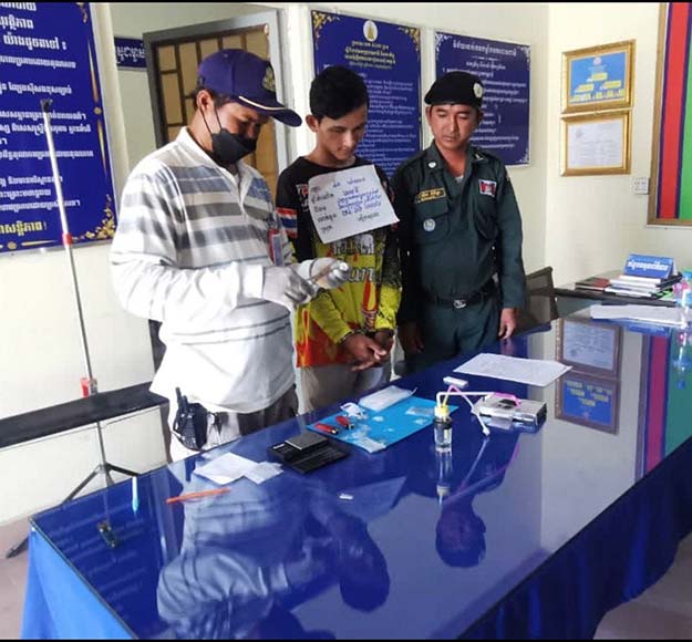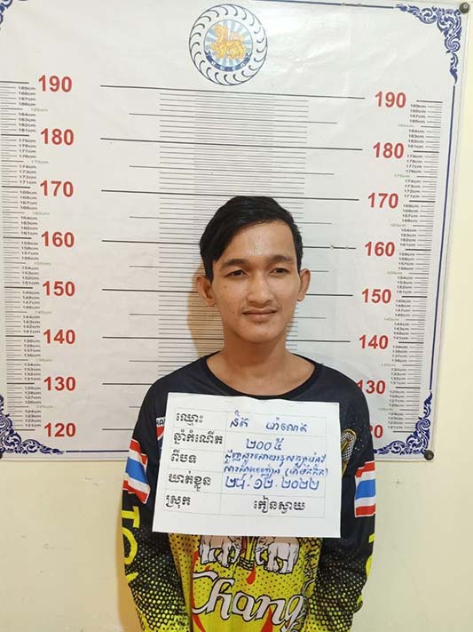 សមត្ថកិច្ចនោយាយថា ជនសង្ស័យឈ្មោះនិត ម៉ាណេត ភេទប្រុសអាយុ១៧ ឆ្នាំជនជាតិខ្មែរ មុខរបរមិនពិតប្រាកដ មានទីលំនៅភូមិដីឥដ្ឋកោះផុស ឃុំដីឥដ្ឋ ស្រុកកៀនស្វាយ ខេត្តកណ្តាល ។ វត្ថុតាងចាប់យករួមមាន ម្សៅក្រាមពណ៌សថ្លាសង្ស័យសារធាតុញៀនប្រភេទម៉ាទឹកកក ចំនួន១២កញ្ចប់(ធំ០១កញ្ចប់តូច១១កញ្ចប់)ទម្ងន់៩,៤៤ ក្រាម និង សម្ភារប្រើប្រាស់វេចខ្ចប់ថ្នាំញៀនមួយចំនួន។