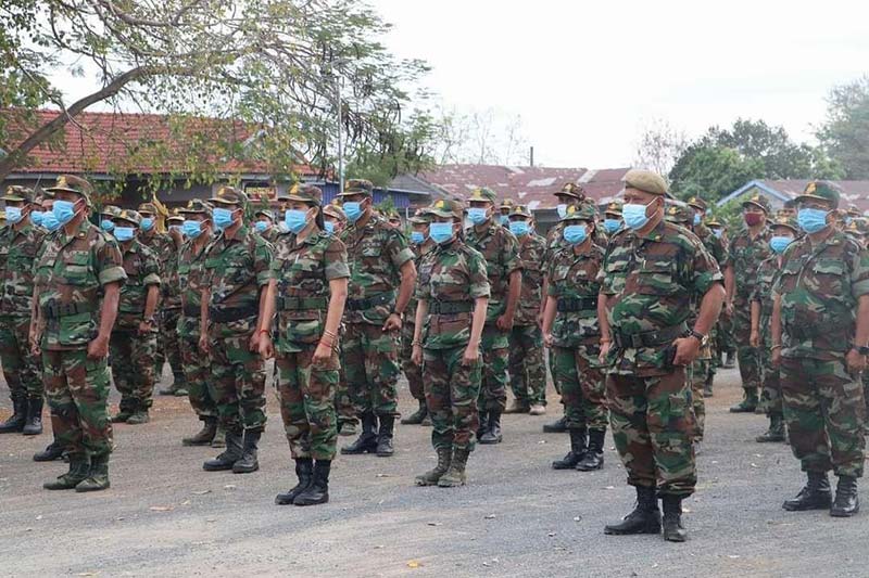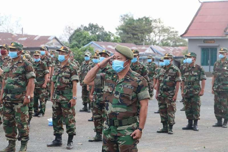 នៅក្នុងពិធីគោរពទង់ជាតិនោះផងដែរ ឯកឧត្ដម មេបញ្ជាការ បានណែនាំដល់នាយទាហាន នាយទាហានរង នឹងពលទាហាន ទាំងអស់ ត្រូវយកចិត្ដទុកដាក់អំពីបញ្ហាជំងឺកូវីដ-១៩ ដែលកំពុងរីករាលដាលនៅក្នុងសហគមន៍ និងត្រូវយកចិត្ដទុកដាក់អនុវត្តតាមការណែនាំរបស់ក្រសួងសុខាភិបាល នឹងត្រៀមរៀបចំទទួលការចាក់វ៉ាក់សាំងបង្ការជំងឺកូវីដ-១៩ដល់នាយទាំហាន នាយទាហានរង ពលទាហាន នាពេលខាងមុខនេះផងដែ។