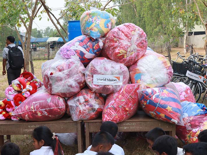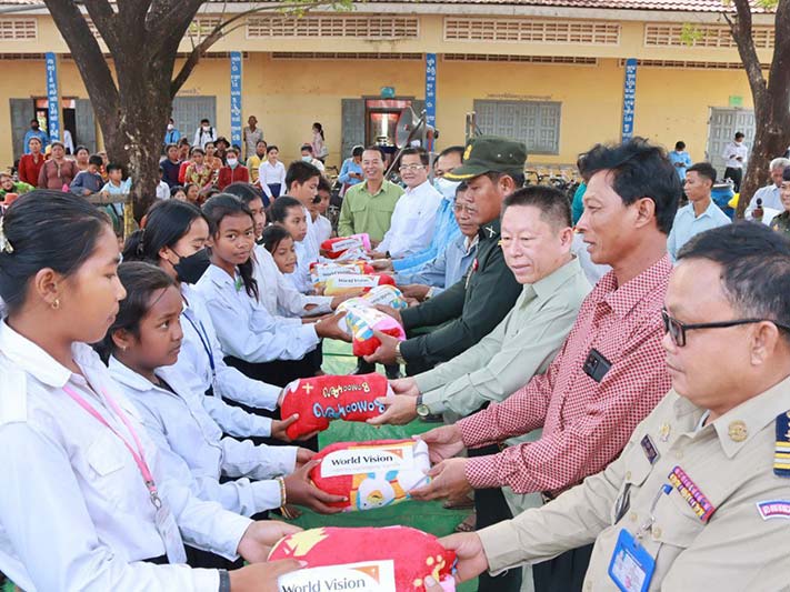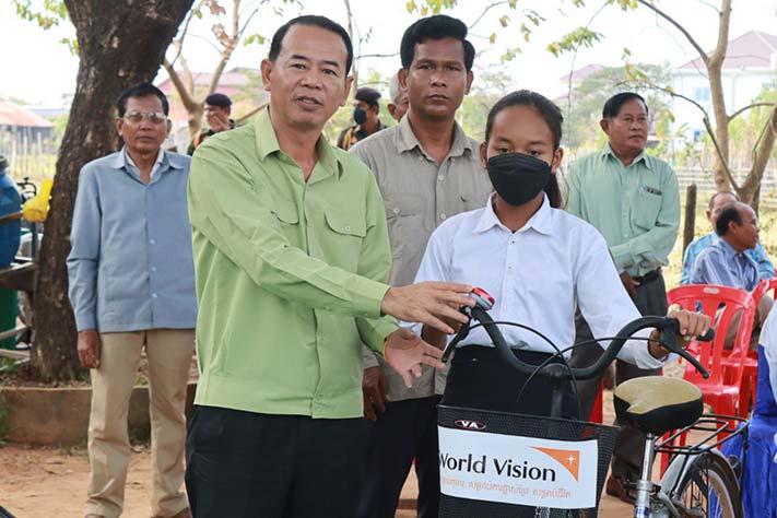 កំពង់ធំ÷ លោក សាយ គឹមឡម អភិបាលស្រុកស្ទោង និងសហការី ព្រមទាំងបុគ្គលិកអង្គការទស្សនពិភពលោកកម្ពុជា បានចែក កង់ចំនួន២៥០គ្រឿង និងភួយចំនួន៦៧៥ដល់ កុមារទំនុកបំរុងរបស់អង្គការទស្សនពិភពលោកកម្ពុជា មកពីឃុំចំនួន១២ក្នុងស្រុកស្ទោង ខេត្តកំពង់ធំ នៅព្រឹកថ្ងៃទី០៨ ខែកុម្ភៈ ឆ្នាំ២០២៣ ដែលជាអំណោយរបស់អង្គការទស្សនពិភពលោកកម្ពុជា ប្រជាជនអាមេរិកាំង និងប្រជាជនម៉ាឡេស៊ី។