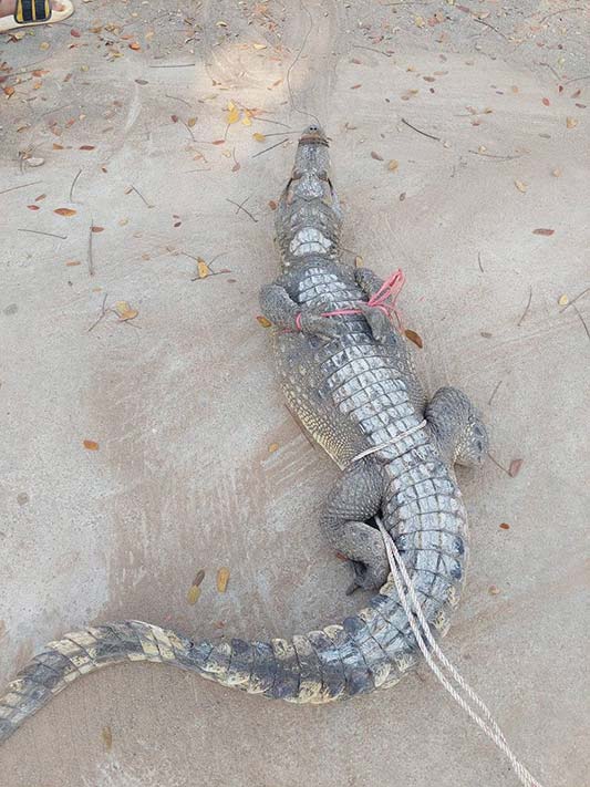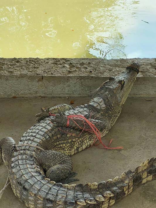 បន្ទាយមានជ័យ៖ អ្នកស្រុករើសបានក្រពើមួយក្បាល យកមកដាក់វត្តរលំជ្រៃ ស្រុកថ្មពួក ខេត្តបន្ទាយមានជ័យ ព្រះសង្ឃប្រកាសរកញ៉ោមម្ចាស់មកទទួលវិញ ដែលចាប់បានកាលពីថ្ងៃទី០៧ ខែកុម្ភៈ ឆ្នាំ២០២៣។