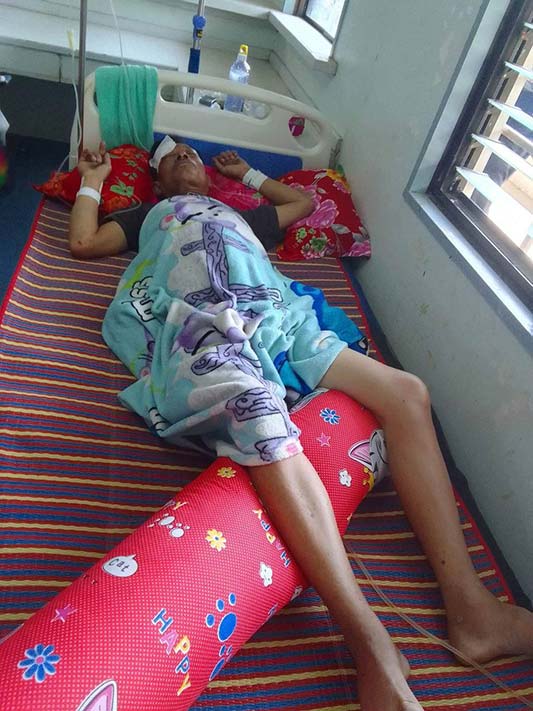 បន្ទាយមានជ័យ៖ កម្មកររុះរើអគារកាស៊ីណូដាច់ខ្សែកាបធ្លាក់ធ្លាយគ្រឿងក្នុងឈាមកកក្នុងពោះធ្វើកាតវៈកាត់ទាំងយប់រួចផុតពីគ្រោះថ្នាក់ហើយដែលកំពុងសម្រាកព្យាបាលនៅមន្ទីពេទ្យមិត្តភាពកម្ពុជា.ជប៉ុនមង្គលបូរីឬមន្ទីពេទ្យខេត្តបន្ទាយមានជ័យ។