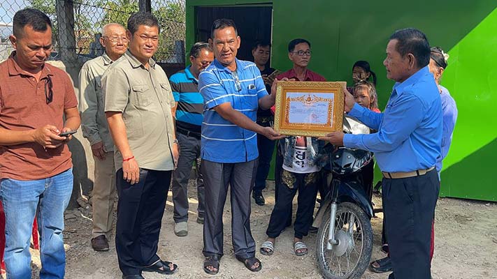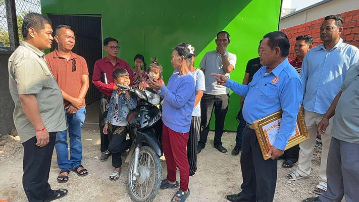 ខេត្តស្វាយរៀង: លោក លឹម សៀងហេង អភិបាលក្រុងបាវិតរួមនិងលោកចៅសង្កាត់បាវិត ព្រមទាំងសប្បុរសជននានានៅក្នុងភូមិបាវិតលើសង្កាត់បាវិតក្រុងបាវិតខេត្តស្វាយរៀងនៅព្រឹកថ្ងៃទី ៥ ខែមីនាឆ្នាំ ២០២៣នេះបានអញ្ជើញប្រគល់ផ្ទះមួយខ្នងនិងម៉ូតូមួយគ្រឿងដល់ស្ត្រីមេម៉ាយម្នាក់ដែលមានកូនប្រុសស្រីចំនួន ៦ នាក់រស់នៅក្នុងបន្ទុកដើម្បីជួយសម្រួលដល់ជីវភាពរស់នៅក្នុងគ្រួសារ។