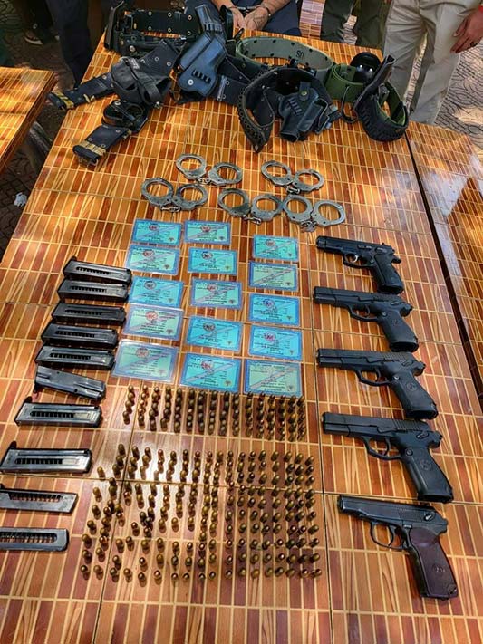 មន្រ្តីនគរបាលបានបញ្ជាក់ថា ក្នុងពេលកិច្ចប្រតិបត្តិការអនុវត្តដីកាបង្គាប់ឱ្យចាប់ខ្លួនទណ្ឌិត, កម្លាំងជំនាញ កំណត់បាន និងរកឃើញអាវុធខ្លី៥ដើម រួមមាន៖ ម៉ាកឡុក CF98 ពណ៌ខ្មៅ ចំនួន៣ដើម, ម៉ាក K59 ពណ៌ខ្មៅ ចំនួន ១ដើម និងម៉ាក CZ75 ពណ៌ខ្មៅ ចំនួន១ដើម) រួមទាំងប័ណ្ណសម្គាល់អាវុធខ្លីផុតសុពលភាពចំនួន១៥សន្លឹក ចន្លោះពីឆ្នាំ២០០៧ និង២០០៨, គ្រាប់កាំភ្លើងចំនួន ២៥៩គ្រាប់ (គ្រាប់K59 ចំនួន ៤៩គ្រាប់ និងគ្រាប់ឡុកចំនួន២១០គ្រាប់) រួមទាំងសាន់តារ៉ុងចំនួន០៦, ម៉ាស៊ីនផ្ទុករូបភាពកាំម៉ារ៉ាសុវត្ថិភាពចំនួន០២គ្រឿ, ខ្នោះដៃចំនួន០៥គូ និងស្រោមខ្នោះចំនួន០៤ផងដែរ។