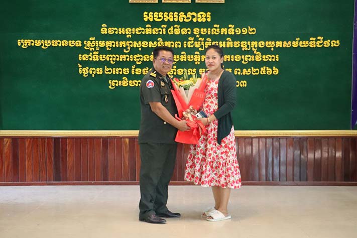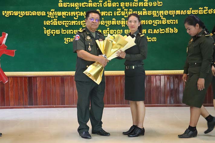 ព្រះវិហារ៖ នៅព្រឹកថ្ងៃទី០៨ ខែមីនា ឆ្នាំ២០២៣នះ នៅទីបញ្ជាការតំបន់ប្រតិបត្តិការសឹករងព្រះវិហារ បានរៀបចំប្រារព្ធពិធីអបអរសាទរខួបលើកទី១១២ ទិវានារីអន្តរជាតិ ៨មីនា ឆ្នាំ២០២៣ ក្រោមប្រធានបទ ស្ត្រីរួមគ្នារក្សាសុខសន្តិភាព ដើម្បីកិច្ចអភិវឌ្ឍន៍ក្នុងយុគសម័យឌីជីថល។ ពិធីនេះប្រព្រឹត្តទៅក្រោមអធិបតីភាពដ៏ ឯកឧត្តម ឧត្តមសេនីយ៍ទោ ច័ន្ធ សុភត្រ្តា មេបញ្ជាការ តំបន់ប្រតិបត្តិការសឹករងព្រះវិហារ និងលោកជំទាវ ។