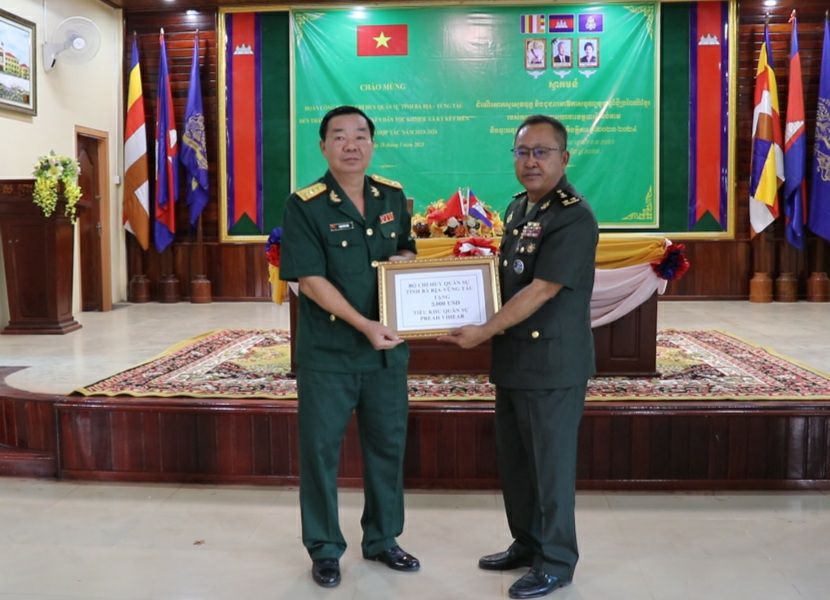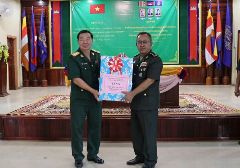 ឧត្ដមសេនីទោយ៏ទោ ច័ន្ធ សុភត្រ្តា មេបញ្ជាការតំបន់ប្រតិបត្តិការសឹករងព្រះវិហារ បានស្វាគមន៏យ៉ាងកក់ក្ដៅចំពោះការធ្វើដំណើរសួសុខទុក្ខរបស់គណៈប្រតិភូវៀតណាម មកដល់ទីបញ្ជាការតំបន់ប្រតិបត្តិការសឹករងព្រះវិហារ នេះសបញ្ជាក់អោយឃើញថា ក្នុងកិច្ចសហប្រតិបត្តការល្អ ពង្រឹងសម្ព័ន្ធមេត្រីភាព រវៀងកងទ័ព ទាំងពីប្រទេស។