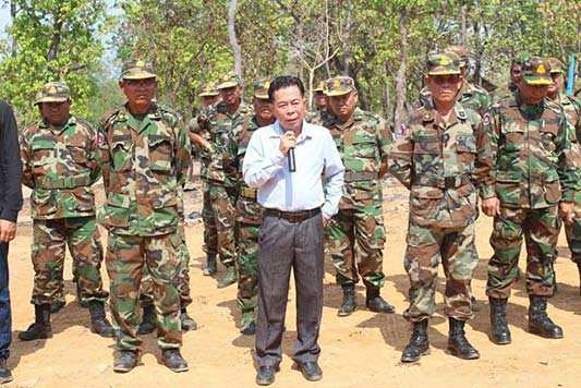 ខេត្តឧត្ដរមានជ័យ៖ ថ្ងៃទី៣១ ខែមីនា ឆ្នាំ២០២៣ លោកឧត្តមសេនីយ៍ត្រី ណែម អឿត មេបញ្ជាការរង នាយសេនាធិការ តំបន់ប្រតិបត្តិការសឹករងឧត្តរមានជ័យ ព្រមទាំងនាយទាហាន នាយទាហានរង និងពលទាហាន អញ្ជើញទទួលលោក ញឺន គួន ប្រធានមន្ទីរធនធានទឹក និងឧតុនិយម ខេត្តឧត្តរមានជ័យ តំណាងដ៏ខ្ពង់ខ្ពស់ ឯកឧត្តម លឹម គានហោ រដ្ឋមន្ត្រីក្រសួងធនធានទឹក និងឧតុនិយម អញ្ជើញចុះសំណេះសំណាល សួរសុខទុក្ខ និងនាំយកអំណោយសម្ព័ន្ធមេត្រីភាព ប្រគល់ជូន នាយ-ពលទាហាន របស់តំបន់ប្រតិបត្តិការសឹករងឧតរមានជ័យ ប្រចាំនៅទិសប្រាសាទតាក្របី។