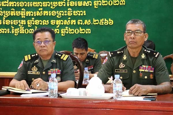 ព្រះវិហារ÷ នៅព្រឹកថ្ងៃទី ០៣ ខែមេសា ឆ្នាំ២០២៣នេះ នៅទីបញ្ជាការតំបន់ប្រតិបត្តិការសឹករងព្រះវិហារ បានរៀបចំកិច្ចប្រជុំ បូកសរុបលទ្ធផលការងារយោធាប្រចាំ ខែមីនា ឆ្នាំ២០២៣ និងដាក់ចេញទិសដៅការងារយោធាប្រចាំ ខែមេសា ឆ្នាំ២០២៣ និងបំពាក់គ្រឿងឥស្សរិយយស ជូននាយទាហាន ក្រោមអធិបតីភាព ឯកឧត្តម ឧត្តមសេនីយ៍ទោ ច័ន្ទ សុភ័ក្ដ្រា មេបញ្ជាការ តំបន់ប្រតិបត្តិការសឹករងព្រះវិហារ និងមានការអញ្ជេីញចូលរួមពីសំណាក់ លោកមេបញ្ជាការរង មេបញ្ជាការរង នាយសេនាធិការ មេបញ្ជាការវរសេនាតូចទាំង២ មេបញ្ជាការកងអនុសេនាធំ មេបញ្ជាការ មេបញ្ជាការរង ក្រុង-ស្រុក នាយការិយាល័យ ផ្នែក អង្គភាពចំណុះទីបញ្ជាការតំបន់ប្រតិបត្តិការសឹករងព្រះវិហារ ។
