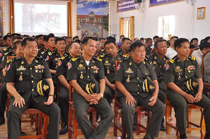 ក្នុងឱកាសនោះឯកឧត្តមឧត្តមសេនីយ៍ ទោ ដួង សំនៀង មេបញ្ជាការកងពលតូចអន្តរាគមន៍លេខ៧ បានឡើងអានរបាយការណ៍ និងថ្លែងថា ទោះបីស្ថានការណ៍ នៅតាមបណ្តោយព្រំដែន មានសភាពស្ងប់ស្ងាត់ និងកំពុងបានប្រែក្លាយជាព្រំដែនសន្តិភាព និងអភិវឌ្ឍន៏ជាមួយប្រទេសជិតខាងក្តី តែកងទ័ពមិនបានធ្វេសប្រហែស និងមើលស្រាលសភាពការណ៍នោះឡើយ គឺតែងពង្រឹងស្មារតី ការពារបូរណភាពទឹកដី មិនឱ្យសត្រូវណា មករំលោភបំពានបានឡើយ និងត្រៀមខ្លួនអនុវត្តន៍ បទបញ្ជារបស់រាជរដ្ឋាភិបាល ការពាររបបរាជានិយមអាស្រ័យរដ្ឋធម្មនុញ្ញ ការពាររាជរដ្ឋាភិបាលស្របច្បាប់នឹងប្រឆាំងដាច់ខាត រាល់ការប៉ុនប៉ងផ្តួលរំលំ រាជរដ្ឋាភិបាលស្របច្បាប់ពីក្រុមជនអគតិណាមួយ។