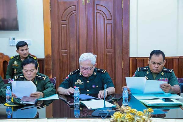 ភ្នំពេញ៖ នៅបញ្ជាការដ្ឋានកងទ័ពជើងគោក ព្រឹកថ្ងៃទី២១ ខែមេសា ឆ្នាំ២០២៣ បានប្រជុំឆ្លងរបាយការណ៍ការងារគ្រប់គ្រងគ្រឿងបំពាក់សំភារះបច្ចេកទេស ឆ្នាំ២០២២ ទិសដៅ ឆ្នាំ២០២៣ ស្តីពីការពង្រឹងការងារគ្រប់គ្រងសំភារះបច្ចេកទេស ដែលកិច្ចប្រជុំនេះបានប្រព្រឹត្តទៅក្រោមវត្តមាន ឧត្តមសេនីយ៍ឯក សួន ខាំឡ មេបញ្ជាការរងកងទ័ពជើងគោក និង មាន ការអញ្ជើញចូលរួមពី នាយទាហាន ជំនាញកងទ័ពជើងគោកជាច្រើនរូបទៀត ។