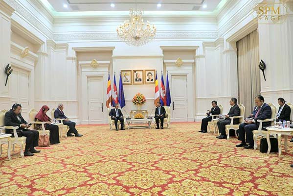 ភ្នំពេញ៖ សម្តេចអគ្គមហាសេនាបតីតេជោ ហ៊ុន សែន នាយករដ្ឋមន្ត្រី នៃព្រះរាជាណាចក្រកម្ពុជា អនុញ្ញាតឱ្យឯកឧត្តម Mahyeldi Ansharullah អភិបាលខេត្តសូម៉ាត្រាខាងលិច នៃសាធារណរដ្ឋឥណ្ឌូនេស៊ី ចូលជួបសម្តែងការគួរសម និងពិភាក្សាការងារ នៅវិមានសន្តិភាព រាជធានីភ្នំពេញ នាល្ងាចថ្ងៃទី០២ ខែឧសភា ឆ្នាំ២០២៣។