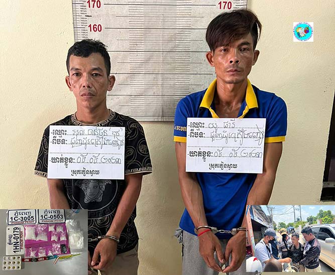 កណ្តាល ៖ ជនសង្ស័យ២នាក់ត្រូវបានសមត្ថកិច្ចឃាត់ខ្លួន នាថ្ងៃទី៥ខែឧសភាឆ្នាំ២០២៣វេលាម៉ោង១២និង៣៥នាទី នៅចំណុចភូមិកោះប្រាក់ ឃុំភូមិធំ ស្រុកកៀនស្វាយ ខេត្តកណ្តាល ពាក់ព័ន្ធគ្រឿងញៀនដ៏ធំប្រចាំស្រុក គឺទិញគ្រឿងញៀនម្តងៗតម្លៃមួយពាន់ដុល្លារ ហើយប្រព្រឹត្ត២០លើកមកហើយ ។ សមត្ថកិច្ចនិយាយថា ជនសង្ស័យ២នាក់រួមមាន ១-ឈ្មោះអុល ចាន់ថន ហៅបាវ ភេទប្រុស អាយុ៣៧ឆ្នាំ ជនជាតិខ្មែរមុខរបរមិនពិត មានទីលំនៅភូមិពពាលខែ ឃុំដីឥដ្ឋស្រុកកៀនស្វាយ ខេត្តកណ្តាល មានដីកាបង្គាប់ឱ្យចាប់ខ្លួននិងធ្លាប់ជាប់ពន្ធនាគារ និង ២-ឈ្មោះយូ ផារី ភេទប្រុស អាយុ៣៦ឆ្នាំ ជនជាតិខ្មែរ មុខរបរមិនពិត មានទីលំនៅភូមិកោះប្រាក់ ឃុំភូមិធំ ស្រុកកៀនស្វាយ ខេត្តកណ្តាល ធ្លាប់ជាប់ពន្ធនាគារ។