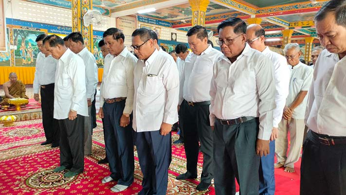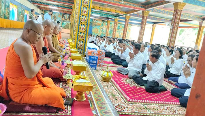 ក្នុងឱកាសនោះដែរ ឯកឧត្តម អភិបាលរងខេត្ត លោក-លោកស្រីក្នុងអង្គពិធីក៏បានប្រគេនទេយ្យទានជូនព្រះសង្ឃ ដើ ម្បីឧទ្ទិសកុសលផលបុណ្យដល់កម្មាភិបាល យុទ្ធជន យុទ្ធនារី បងប្អូនប្រជាពលរដ្ឋដែលបានពលីជីវិតក្នុងបុព្វហេតុការពារជាតិមាតុភូមិ និងស្លាប់ក្នុងរបបកម្ពុជាប្រជាធិបតេយ្យ ប៉ុល ពត សូមដួងវិញ្ញាណក្ខន្ធវីរៈជនស្នេហាជាតិទាំងអស់បានទៅសោយសុខក្នុងសុគតិភពកុំបីឃ្លៀងឃ្លាតឡើយ៕ ដោយ ៖ នីយ៉ា