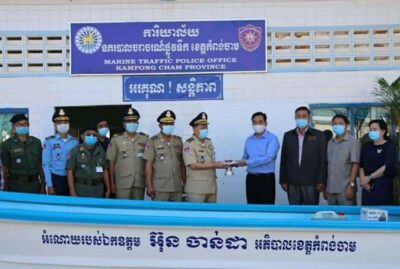 (កំពង់ចាម) ដើម្បីសម្រួលដល់ការអនុវត្តច្បាប់ អភិបាលខេត្តកំពង់ចាមលោក អ៊ុន ចាន់ដា នៅថ្ងៃទី ១៨ ខែធ្នូ ឆ្នាំ២០២០នេះ បានប្រគល់ទូកម៉ាស៉ីន ដល់ការិយាល័យនគរបាលចរាចរណ៍ផ្លូវទឹក នៃស្នងការដ្ឋាននគរបាលខេត្តកំពង់ចាម សម្រាប់ធ្វើប្រតិបត្តិការបង្ក្រាបបទល្មើសផ្សេងៗ ដែលកើតមានលើផ្ទៃទឹក។