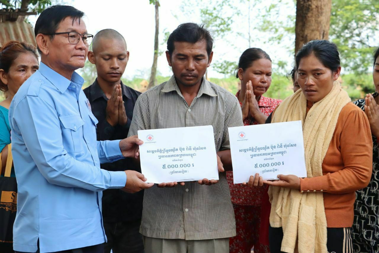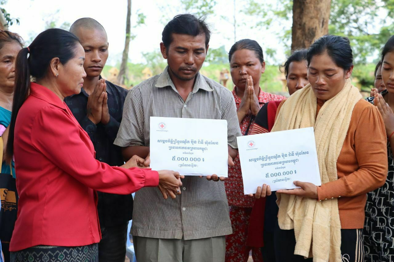 ជាមួយគ្នានេះសម្តេចកិត្តិព្រឹទ្ធបណ្ឌិតប៊ុនរ៉ានីហ៊ុនសែនប្រធានកាកបាទក្រហមកម្ពុជា បានមានប្រសាសន៍ផ្តាំផ្ញើការសួសុខទុក្ឋពីចម្ងាយ មកដល់គ្រួសាររងគ្រោះនិងបានដាសតឿនបន្ថែមឱ្យថែរក្សាសុខភាពឱ្យបានល្អ តាមការណែនាំរបស់ក្រសួងសុខាភិបាល និងប្រឹងប្រែងធ្វើការងារបង្កបង្កើនផលដើម្បីបានស្បៀងសម្រាប់ចិញ្ចឹមគ្រួសារ ។