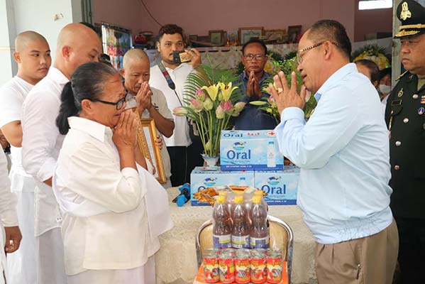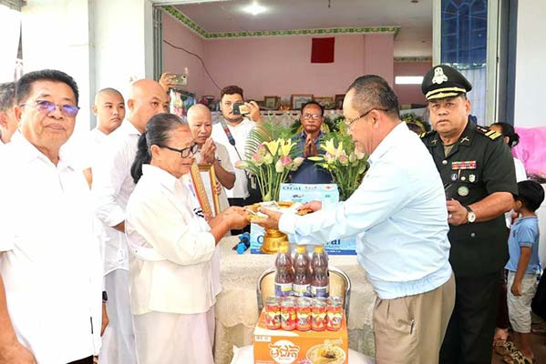 ក្នុងនោះសម្ភារៈរួមមាន៖ ១.អង្ករ ១ប៉េ ស្មើ៣០គីឡូក្រាម ២.ម៊ី ១កេស ៣.ទឹកត្រី ១យួរ ៤.ត្រីខ ១យួរ រួមនិងថវិការចំនួន ៥៥០.០០០រៀលចូលបុណ្យសពផងដែ៕