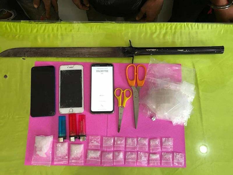 ២-ឈ្មោះ អូន ចន្នី ភេទប្រុស អាយុ១៩ឆ្នាំ មុខរបរមិនពិតប្រាកដ មានទីលំនៅភូមិចង្រៀក ឃុំទួលសាលាស្រុកបរសេដ្ឋ ខេត្តកំពង់ស្ពឺ ។៣-ឈ្មោះ អឿ សុធា ភេទប្រុស អាយុ២៣ឆ្នាំ មុខរបរមិនពិតប្រាកដ មានទីលំនៅភូមិក្បៀ ឃុំទួលសាលា ស្រុកបរ សេដ្ឋ ខេត្តកំពង់ស្ពឺ ។៤-ឈ្មោះ ធី ចាន់ថន ភេទប្រុស អាយុ១៧ឆ្នាំ មុខរបរមិនពិតប្រាកដ មានទីលំនៅភូមិត្រពាំងក្រឡាញ់ ឃុំមហាសាំង ស្រុកភ្នំស្រួច ខេត្តកំពង់ស្ពឺ ។ ៥-ឈ្មោះ ខុន សៀងហួត ភេទប្រុសអាយុ១៨ឆ្នាំ មុខរបរមិនពិតប្រាកដមានទីលំនៅភូមិស្ទឺង ឃុំត្រពាំងគង ស្រុកសំរោងទង ខេត្តកំពង់ស្ពឺពីករណីដឹកជញ្ជូន ចែកចាយគ្រឿងញៀន ។ក្នុងនោះកម្លាំងបានដកហូតវត្ថុតាងសម្ភារះរួមមាន៖១-គ្រឿងញៀនម៉ាទឹកកក ចំនួន១៨កញ្ចប់= ២៥.២៦ ក្រាម២-ម៉ូតូចំនួន ០៣គ្រឿង៣-ទូរស័ព្ទដៃ ០២គ្រឿង៤-ថង់ច្រកថ្នាំចំនួន ២៥០ថង់ ដែកកេះចំនួន០៣ កន្រ្តៃចំនួន ០២ ដាវ ០១ ។បច្ចុប្បន្ន ជនសង្ស័យ វត្ថុតាងសម្ភារះបានបញ្ជូន មកបញ្ជាការដ្ឋានកងរាជអាវុធហត្ថ ខេត្តកំពង់ស្ពឺ ដើម្បីអនុវត្ត តាមនីតិវិធីច្បាប់ ៕
