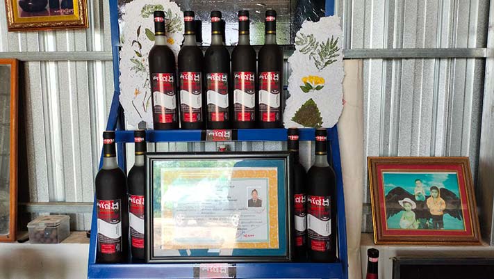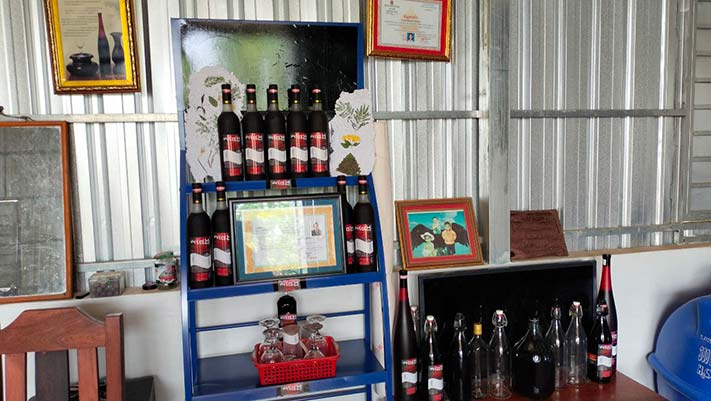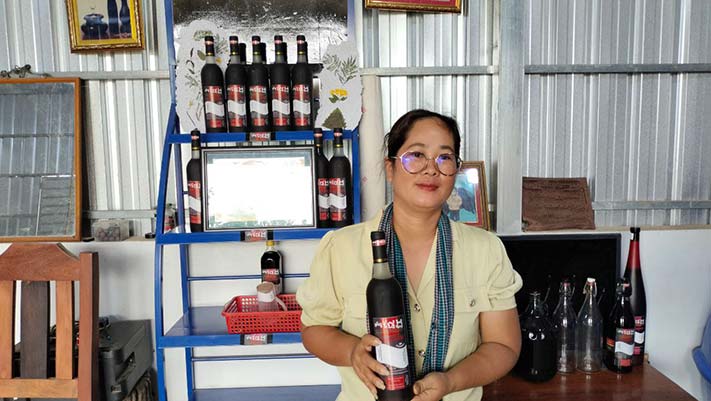 បើតាមប្រភពព័ត៌មានពីស្រ្តីម្នាក់ ឈ្មោះ ឆៃ ចាន់នី ជាម្ចាស់សិប្បកម្មសុរាឱសថបុរាណជំនួយសុខភាពខាងលើបានរៀបរាប់ឱ្យដឹងថា ៖ សិប្បកម្មសុរាឱសថ ដែលបានច្នៃមកពីមើមឱសថបុរាណនេះ មានយីហោ «កំផែង» មានរសជាតិដូចស្រាថ្នាំបេះបិត មានកម្រិតអាល់កុលទាបេត្រឹម១០ដឺក្រេ ដោយ គ្មានការលាយដំបែរនោះឡើយ។ ប្រភពបន្តទៀតថា ស្រាឱសថបុរាណនេះ ផលិតចេញពីមើមពន្លៃខ្មៅ មើមខ្ជាយខ្មៅ មើមល្មៀតខ្មៅ និងអង្ករដំណើបខ្មៅ យកលាយចូលគ្នាបន្ទុំផ្អាប់ទុករយ:ពេល១ឆ្នាំពេញ ទើបអាចយកទៅជម្រាញ់ផលិតទៅជាសុរាឱសថ ដែលអាចផ្តល់ជំនួយដល់សុខភាពបុរសស្រ្តីគ្រប់វ័យ ពោលគឺបណ្តេញជាតិពុលក្នុងខ្លួន ជួយកាត់បន្ថយការលើសឈាមធ្ងន់ធ្ងរ បញ្ហាទឹកនោមផ្អែម និងសម្រួលការឈឺសន្លាក់សរសៃដៃជើងជាដើម ជាពិសេសមានអ្នកដែលធ្លាប់កើតជំងឺ ត្រូវប្តូរឈាមរៀងរាល់ខែ ក៏ធ្វើឱ្យធូរស្រាល ក្រោយពេលប្រើប្រាស់ស្រាឱសថនេះកន្លងមក។