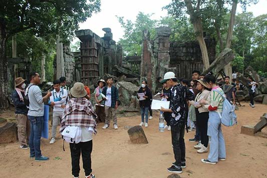 ព្រះវិហារ៖នៅ ថ្ងៃទី០១ ខែមិថុនា ឆ្នាំ២០២៣ សាស្រ្តាចារ្យ និងនិស្សិតមហាវិទ្យាល័យបុរាណវិទ្យា ជំនាន់ទី៣១ ទី៣២ និងជំនាន់ទី៣៣ ចំនួន៧០នាក់ បានធ្វើទស្សនកិច្ចសិក្សានៅរមណីយដ្ឋានប្រាសាទកោះកេរ ដែលដឹកនាំដោយលោកស្រី យ៉ង់ រតនា ព្រឹទ្ធបុរសមហាវិទ្យាល័យបុរាណវិទ្យា ដោយមានការសម្របសម្រួលពន្យល់ ធ្វើបទបង្ហាញដោយលោក ភិន សំណាង ប្រធាននាយកដ្ឋានស្រាវជ្រាវ បណ្តុះបណ្តាល និងតម្កល់ឯកសារ និងលោក ភិន ភក្តី អនុប្រធាននាយកដ្ឋាន អភិរក្ស និងបុរាណវិទ្យា បានពន្យល់អំពីបរិបទទូទៅ ប្រវត្តិសាស្រ្ត ប្រព័ន្ធធារាសាស្រ្តបុរាណ និងទស្សនាប្រាសាទមួយចំនួននៅក្នុងរមណីយដ្ឋានប្រាសាទកោះកេរ រួមមាន៖ ប្រាសាទក្រហម ប្រាសាទរួម ប្រាសាទប្រាង្គ ប្រាសាទលិង្គទី១ ប្រាសាទក្រចាប់ ប្រាសាទខ្នារ ត្រពាំងអង្គខ្នារ ប្រាសាទប្រាំ។