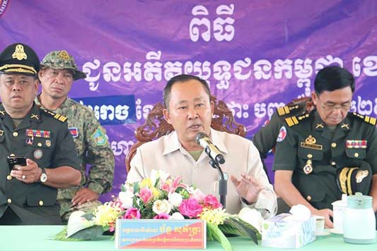 នាឱកាសនេះដែរ ឯកឧត្តម ប្រធានបានសូមកោតសរសើរនូវវីរភាពដ៏អង់អាចក្លាហានរបស់អតីតយុទ្ធជន ដែលបានលះបង់សាច់ស្រស់ ឈាមស្រស់ ដើម្បីបុព្វហេតុជាតិមាតុភូមិនិងប្រជាជន ។