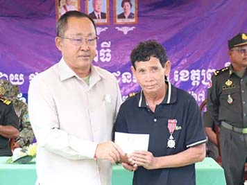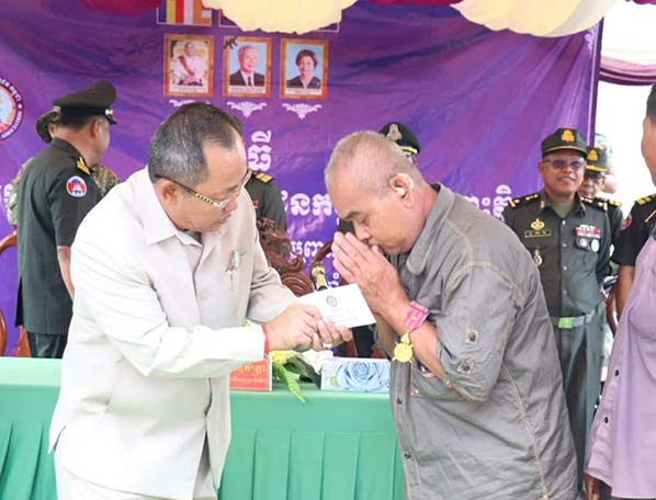 នៅក្នុងឱកាសបំពាក់មេដាយនោះដែរ ឯកឧត្តម ប្រធាន បាននាំយកថវិការដែលជាអំណោយដ៍ថ្លៃថ្លារបស់ សម្តេចអគ្គមហាសេនាបតីតេជោ ហ៊ុន សែន នាយករដ្ឋមន្ត្រី នៃព្រះរាជាណាចក្រកម្ពុជា និងជាប្រធានសមាគមអតីតយុទ្ធជនកម្ពុជា និងសម្ដេចកិត្តិព្រឹទ្ធបណ្ឌិត ប៊ុន រ៉ានី ហ៊ុន សែន ផ្ដល់ជូនក្នុងម្នាក់ៗទទួលបានថវិកាចំនួន ៥០,០០០រៀលកំដរដៃបងប្អូនផងដែរ៕