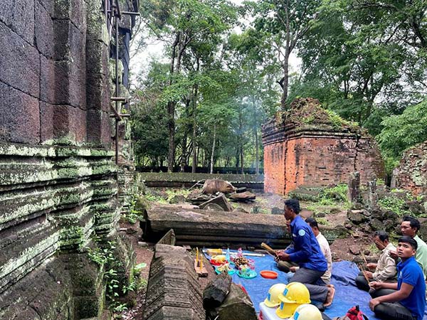 ព្រះវិហារ៖ ថ្ងៃទី៦ ខែមិថុនា ឆ្នាំ២០២៣នេះ លោក ភិន ភក្តី អនុប្រធាននាយកដ្ឋាននៃនាយកដ្ឋានអភិរក្ស និងបុរាណវិទ្យាប្រចាំរមណីយដ្ឋានប្រាសាទកោះកេរ បានដឹកនាំមន្រ្តីបច្ចេកទេសរៀបចំពិធីសែនព្រេនបើកការដ្ឋានគម្រោងអភិរក្សបដិមាព្រះព្រហ្មរកឃើញនៅប្រាសាទបន្ទាយពីរជាន់។