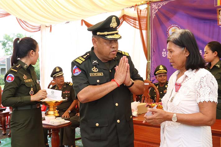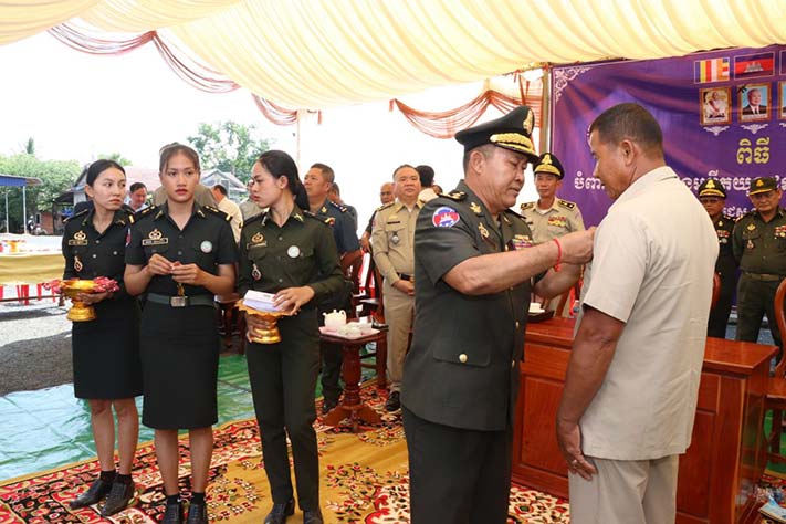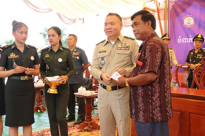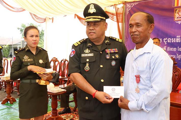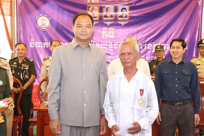 នាឱកាសនេះដែរ ឯកឧត្តម ប្រធានបានសូមកោតសរសើរនូវវីរភាពដ៏អង់អាចក្លាហានរបស់អតីតយុទ្ធជន ដែលបានចូលរួមចំណែកស្វែងរកសន្តិភាពជូនជាតិនិងប្រជាជន ដែលលះបង់សាច់ស្រស់ ឈាមស្រស់ ដើម្បីបុព្វហេតុជាតិមាតុភូមិ។ នៅក្នុងឱកាសបំពាក់មេដាយនោះដែរ ឯកឧត្តម ប្រធាន បាននាំយកថវិការដែលជាអំណោយដ៍ថ្លៃថ្លារបស់ សម្តេចអគ្គមហាសេនាបតីតេជោ ហ៊ុន សែន នាយករដ្ឋមន្ត្រី នៃព្រះរាជាណាចក្រកម្ពុជា និងជាប្រធានសមាគមអតីតយុទ្ធជនកម្ពុជា និងសម្ដេចកិត្តិព្រឹទ្ធបណ្ឌិត ប៊ុន រ៉ានី ហ៊ុន សែន ផ្ដល់ជូនក្នុងម្នាក់ៗទទួលបានថវិកាចំនួន ៥០,០០០រៀលកំដរដៃបងប្អូនផងដែរ៕