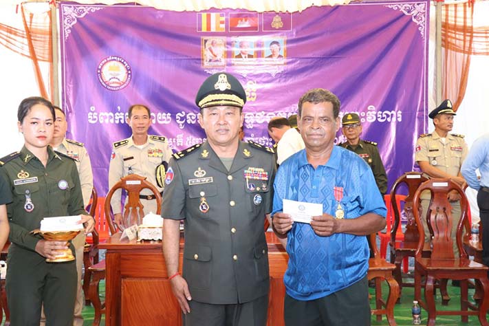 ព្រះវិហារ៖ នាព្រឹកថ្ងៃទី ០៨ ខែមិថុនា ឆ្នាំ២០២៣នេះ សមាគមនអតីតយុទ្ធជនកម្ពុជាខេត្ដព្រះវិហារ បានរៀបចំពិធី បំពាក់មេដាយកិត្តិយសកាពារជាតិ ជូនអតីតយុទ្ធជនកម្ពុជា ក្រុងព្រះវិហារ ចំនួន ៣៦៥នាក់។ ពិធីនេះធ្វើឡើង ក្រោមអធិបតីភាព ឯកឧត្ដម គីម រិទ្ធី អភិបាលនៃគណៈអភិបាលខេត្ត និងជាប្រធានកិត្តិយសសមាគមអតីតយុទ្ធជនកម្ពុជាខេត្តព្រះវិហារ ស្ថិតនៅទីបញ្ជាការតំបន់ប្រតិបត្តិការសឹករងព្រះវិហារ។