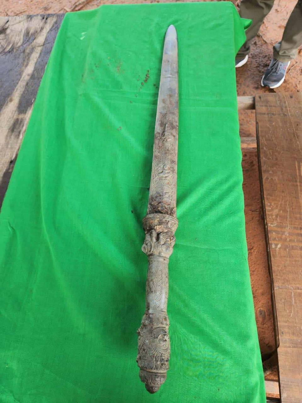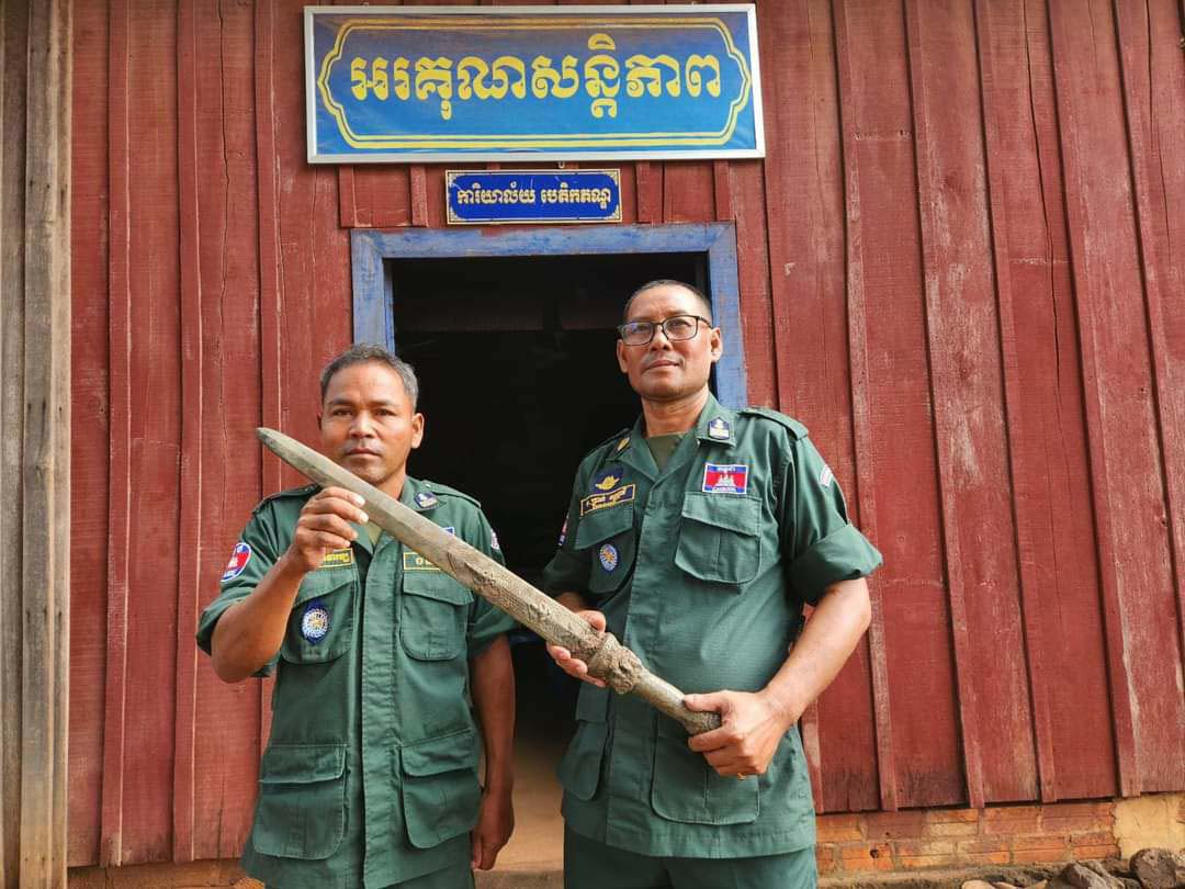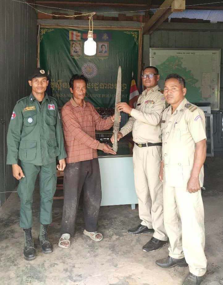ព្រះវិហារ៖កាលពីថ្ងៃទី០៥/មិថុនា/២០២៣កន្លងទៅ មានអាខោនហ្វេសបុកឈ្មោះ (ណេ ព្រះវិហារ)បានបង្ហោះរូប(ព្រះខ័នរាជ្យបុរាណ)ដែលមានអាយុកាលរាប់លានរាប់ពាន់ឆ្នាំនាសម័យកាល ដោយក្រោមការដឹកនាំ ដោយលោកឧត្តមសេនីយ៍ទោ សួស សុខដារ៉ា ស្នងការនគរបាលខេត្តព្រះវិហារ បានដាក់ផែនការអោយទៅ កម្លាំងជំនាញការិយាល័យនគរបាលបេតិកភណ្ឌ នៃស្នងការដ្ឋាននគរបាលខេត្តព្រះវិហារ សហការជាមួយកម្លាំងអធិការដ្ឋាននគរបាលស្រុកត្បែងមានជ័យ កម្លាំងអធិការដ្ឋាននគរបាលស្រុករវៀង ចុះស្រាវជ្រាវរក ម្ចាស់ហ្វេសប៊ុក ដែលបានបង្ហោះរូប(ព្រះខ័នរាជ្យបុរាណ)សមត្ថកិច្ចធ្វើការស្រាវជ្រាវអស់រយៈពេល៤ថ្ងៃ លុះមកដល់ ថ្ងៃទី០៩ ខែមិថុនា ឆ្នាំ២០២៣ វេលាម៉ោង៨:៣០នាទីសមត្ថកិច្ចបានរកឃើញ ម្ចាស់ដើមដែលរក្សាទុកវត្ថុបរាណនោះ នៅផ្ទះរបស់ឈ្មោះ ហេង ភីន ភេទប្រុស អាយុ៤២ឆ្នាំ មុខរបរកសិករ រស់នៅភូមិកក់ពោន ឃុំរក្សា ស្រុករវៀង ខេត្តព្រះវិហារ ក្រោយមកសមត្ថកិច្ចបានពន្យល់ណែនាំដល់គាត់ គាត់បានស្ម័គ្គចិត្តយកមកប្រគល់អោយសមត្ថកិច្ចយើងនៅប៉ុស្តិ៍នគរបាលរដ្ឋបាលឃុំរក្សា ដើម្បីយកមករក្សាទុកនៅមន្ទីរវប្បធម៌និងវិចិត្រសិល្បៈខេត្តព្រះវិហារជាបណ្តោះអាសន្ន រង់ចាំមានគោលការណ៍ថ្មីតាមនិតិវិធី។