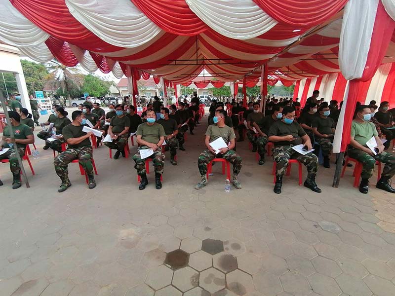 កំពង់ធំ៖ ឧត្តមសេនីយ៍ទោសោមស៊ុន មេបញ្ជាការតំបន់ប្រតិបត្តិការសឹករងកំពង់ធំបានដឹកនាំកងកម្លាំង យោធិន នៃបញ្ជាការដ្ឋានតំបន់ប្រតិបត្តិការសឹករងកំពង់ធំ និង កងរាជអាវុធហត្ថ ខេត្ត ជិត ១០០០នាក់ ដើម្បីចាក់វ៉ាក់សាំងការពារមេរោគកូវិដ១៩នៅព្រឹកថ្ងៃទី៤ ខែមីនា ឆ្នាំ ២០២១ ដែល ពីធីចាក់វ៉ាក់សាំងការពារមេរោគកូវិដ១៩ ត្រូវបានធ្វើឡើងនៅក្នុងបរិវេណបញ្ជាការដ្ឋាន តំបន់ប្រតិបត្តិការសឹករងកំពង់ធំ។