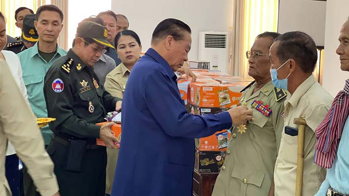 នៅក្នុងពិធីនោះឯកឧត្តមនាយឧត្តមសេនីយ៍ ក៏បាននាំយកអំណោយសម្តេចតេជោ ហ៊ុន សែន និងសម្តេចកិត្តិព្រឹទ្ធបណ្ឌិត ប៊ុន រ៉ានី ហ៊ុនសែន ចែកជូនដល់អតីតយុទ្ធជន១០២នាក់ ដែលអញ្ជើញចូលរួមក្នុងម្នាក់ៗ ទទួលបាន មី១កេស សារុង១ ក្រម៉ា១ ត្រីខ១យួ ព្រមទាំងទទួលចំនួនថវិកា៥ម៉ឺនរៀល។