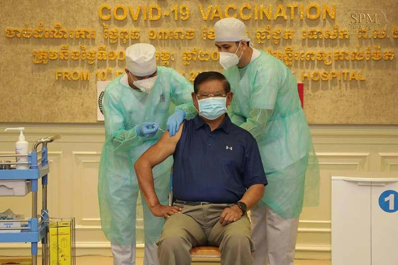ព្រះវិហារៈ នៅព្រឹកថ្ងៃព្រហស្បតិ៍៦រោច ខែផល្គុន ឆ្នាំជូតទោស័ក ព.ស. ២៥៦៤ ត្រូវនឹងថ្ងៃទី០៤ ខែមីនាឆ្នាំ២០២១ នេះ សម្តេចអគ្គមហាសេនាបតីតេជោ ហ៊ុន សែន នាយករដ្ឋមន្ត្រីនៃព្រះរាជាណាចក្រកម្ពុជា និងសម្តេចកិត្តិព្រឹទ្ធបណ្ឌិត ប៊ុន រ៉ានី ហ៊ុនសែន ប្រធានកាកបាទក្រហមកម្ពុជា បានអញ្ជើញចាក់វ៉ាក់សាំងប្រឆាំងជំងឺកូវីដ-១៩ របស់ក្រុមហ៊ុនអាស្ត្រាហ្សេនីកា (Astra zeneca) នៅមន្ទីរពេទ្យកាល់ម៉ែត។ ក្រៅតែពីសម្តេចតេជោ ហ៊ុន សែន និងសម្តេចកិត្តិព្រឹទ្ធបណ្ឌិតហើយនោះ មានមន្ត្រីជាន់ខ្ពស់របស់រាជរដ្ឋាភិបាលកម្ពុជាជាច្រើនរូបទៀត ក៏បានអញ្ជេីញចាក់វ៉ាក់សាំងប្រឆាំងកូវីដ-១៩ របស់ក្រុមហ៊ុនអាស្ត្រាហ្សេនីកានេះផងដែរ។ វ៉ាក់សាំងឈ្មោះ អាស្ត្រាហ្សេនីកា (AstraZeneca/SII) គឺជាវ៉ាក់សាំងជំនួយរបស់មជ្ឈមណ្ឌលកូវ៉ាក់ (COVAX Facility)។ វ៉ាក់សាំងនេះ ត្រូវបានដឹកមកដល់កម្ពុជាក្នុងដំណាក់កាលដំបូងចំនួន (៣២៤,០០០ ដូស) កាលពីរាត្រីថ្ងៃទី០២ ខែមីនា ឆ្នាំ២០២១៕