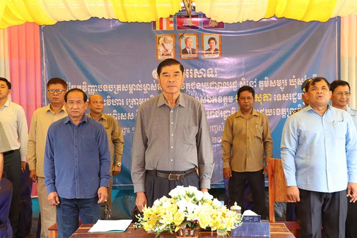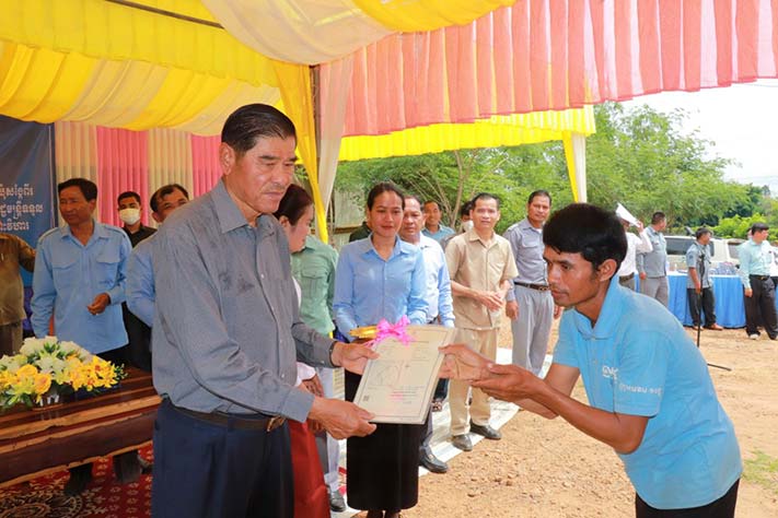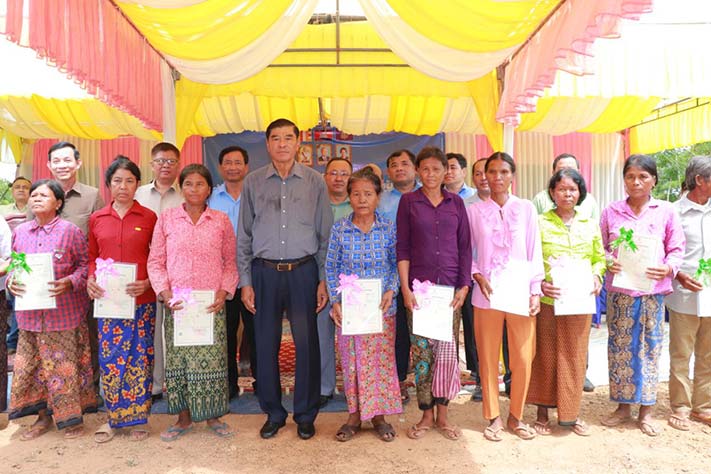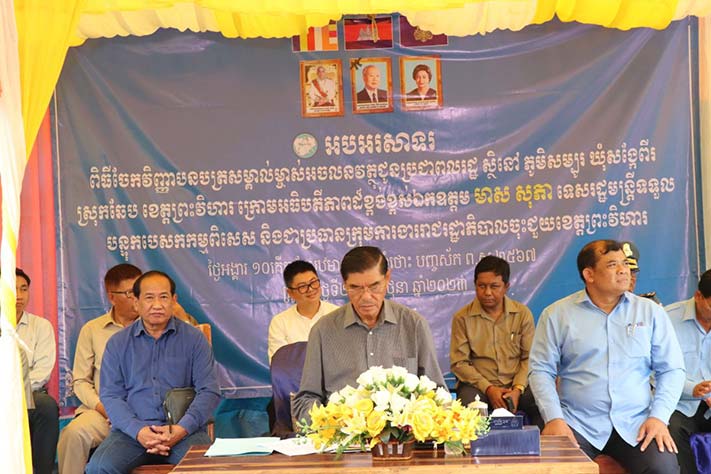 ឯកឧត្ដម ទេសរដ្ឋមន្ត្រី បានលើកឡើងថា ការប្រគល់វិញ្ញាបនបត្រសម្គាល់ម្ចាស់អចលនវត្ថុនាពេលនេះ គឺស្របពេលដែលប្រទេសកម្ពុជា ទទួលបានសុខសន្តិភាព ក្រោមការដឹកនាំរបស់គណបក្សប្រជាជនកម្ពុជា ដែលមានសម្តេចតេជោ ហ៊ុន សែន ជាប្រធានគណបក្ស និងជានាយករដ្ឋមន្ត្រីនៃកម្ពុជា។
