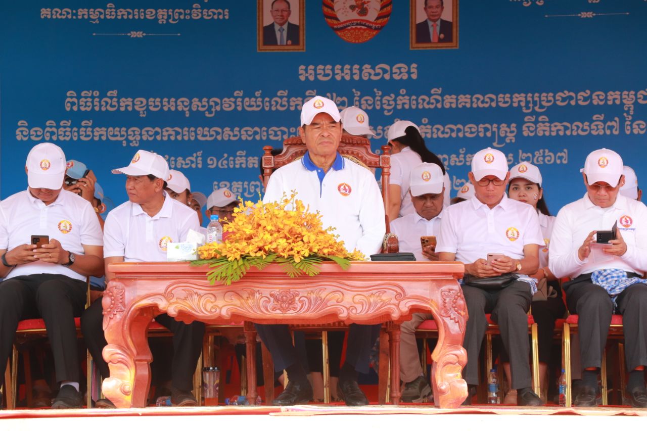ពិធីបើកយុទ្ធនាការឃោសនាបោះឆ្នោតថ្ងៃទី១ របស់គណបក្សប្រជាជនកម្ពុជា នៅខេត្តព្រះវិហារ នាឱកាសនោះ មានការចូលរួមពីលោកជំទាវ ចឹក ហេង សមាជិកព្រឹទ្ធសភាឯកឧត្ដម ប្រាក់ សុវណ្ណ ប្រធានគណៈកម្មាធិការគណបក្ស ប្រជាជនកម្ពុជាខេត្តព្រះវិហារ ឯកឧត្ដម គីម រិទ្ធី អនុប្រធានគណៈកម្មាធិការគណបក្សប្រជាជនកម្ពុជាខេត្ត ព្រមទាំងបេក្ខជនតំណាងរាស្ត្របម្រុងមណ្ឌុលព្រះវិហារទាំង៦រូប ថ្នាក់ដឹកនាំគណបក្សខេត្ត ក្រុង ស្រុក ឯកឧត្ដម លោកជំទាវក្រុមការងារថ្នាក់កណ្តាលចុះមូលដ្ឋានខេត្តព្រះវិហារ ក្រុងព្រះវិហារ ស្រុកត្បែងមានជ័យ សរុបជាង៣០០០នាក់។